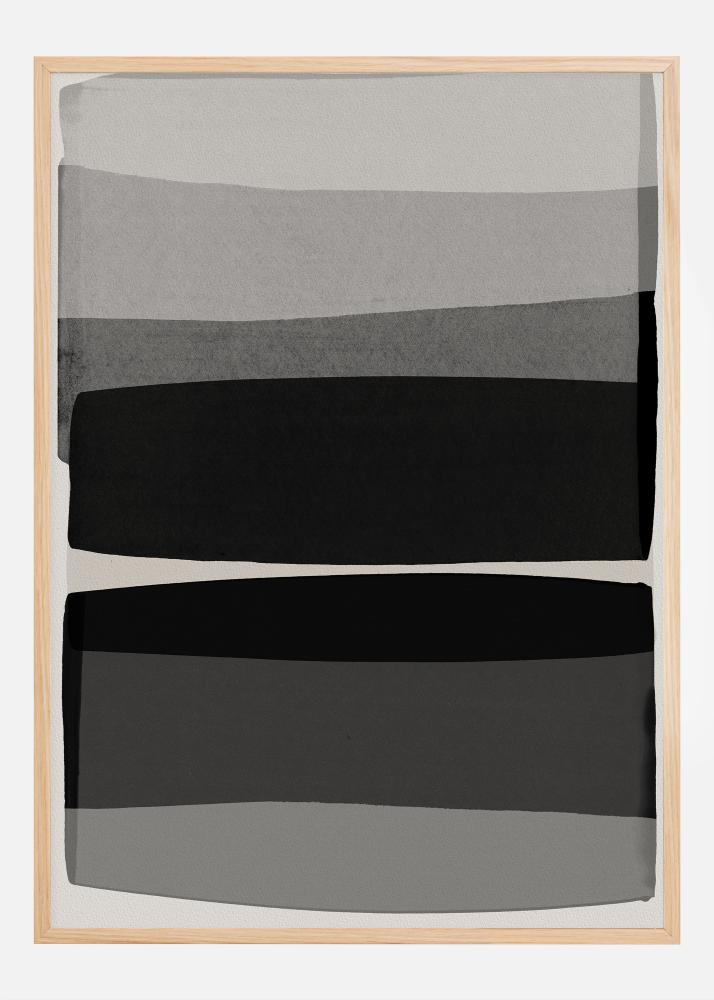Ustvarite občutek moderne minimalizma v vašem domu s to elegantno posterjo. Dizajn je zaznamovan z vodoravnimi linijami različnih debelin in odtenkov sive ter globoke črne, ki skupaj ustvarijo subtilen, a močan vizualni učinek. Ta plakat je popolna predstavitev sposobnosti sodobne umetnosti, da z uporabo preprostosti pusti trajen vtis.