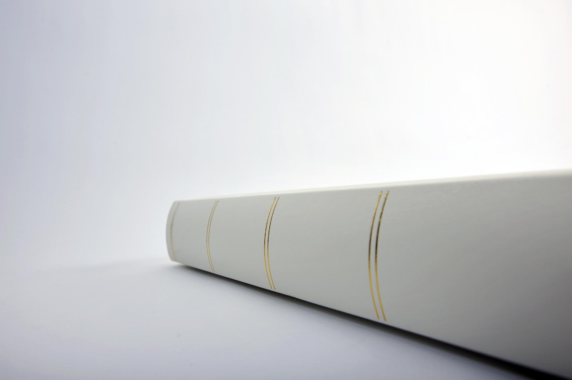 Izberite klasičen dizajn ob izbiri fotoalbuma! Tukaj imamo bel, pol-mat album, okrašen z dvojnimi, zlatimi črtami. V notranjosti boste našli 60 belih strani, na katere lahko sami nalepite svoje fotografije, izrezke iz časopisov in druge pomembne spomine. Album je prav tako primeren za osebno uporabo kot tudi za darilo.