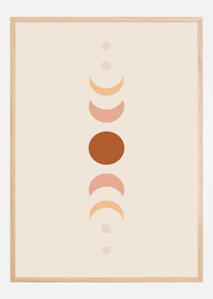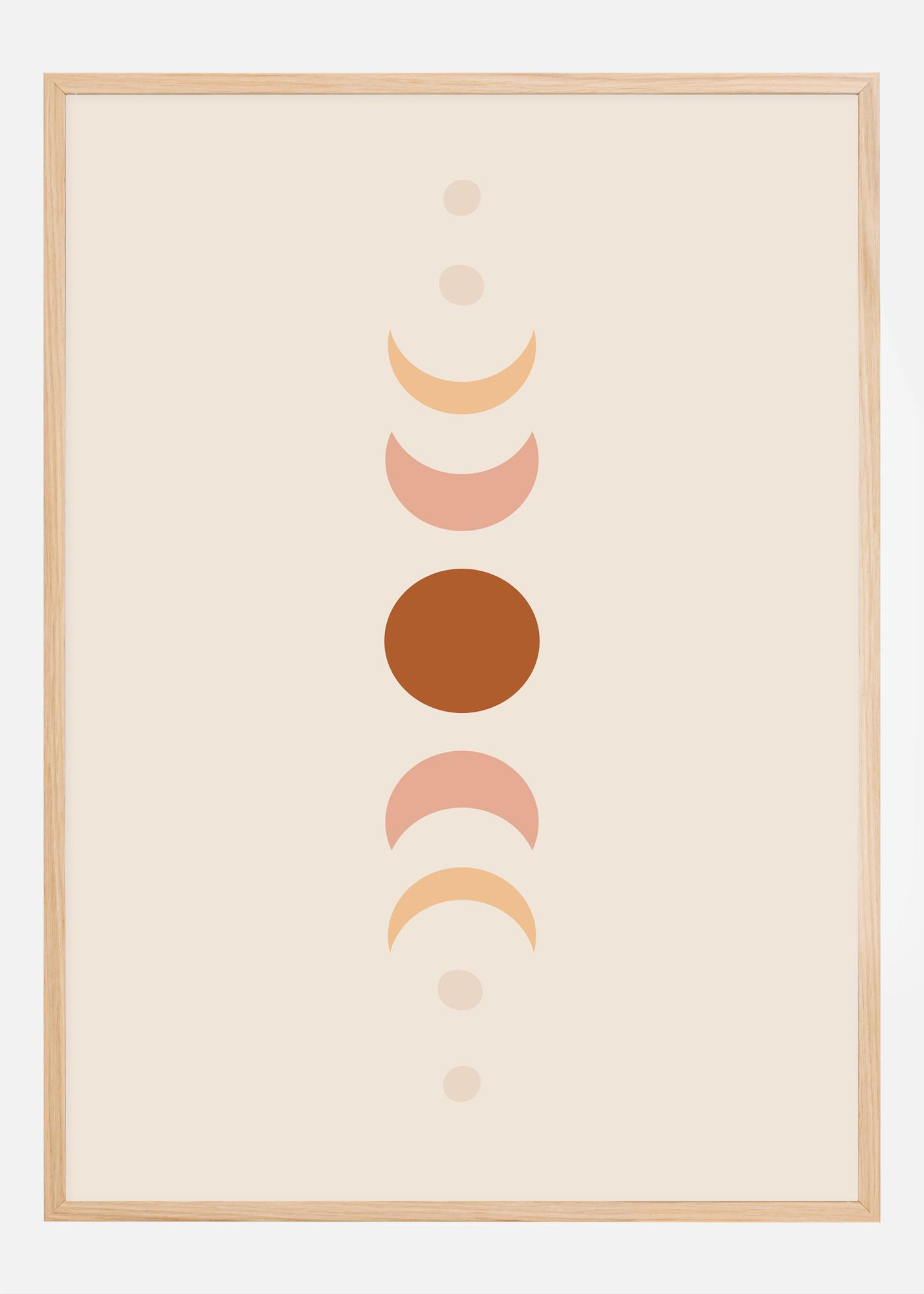 Ta estetsko privlačna plakat, ki prikazuje faze lune v navpičnem zaporedju, ponuja pomirjujoč in čist dizajn, ki vsakemu prostoru daje občutek miru in harmonije. Od mlaja do polne lune je vsaka faza prikazana v mehkih pastelnih tonih na nevtralnem ozadju, kar ustvarja subtilno, vendar močno vizualno izkušnjo.