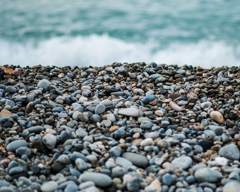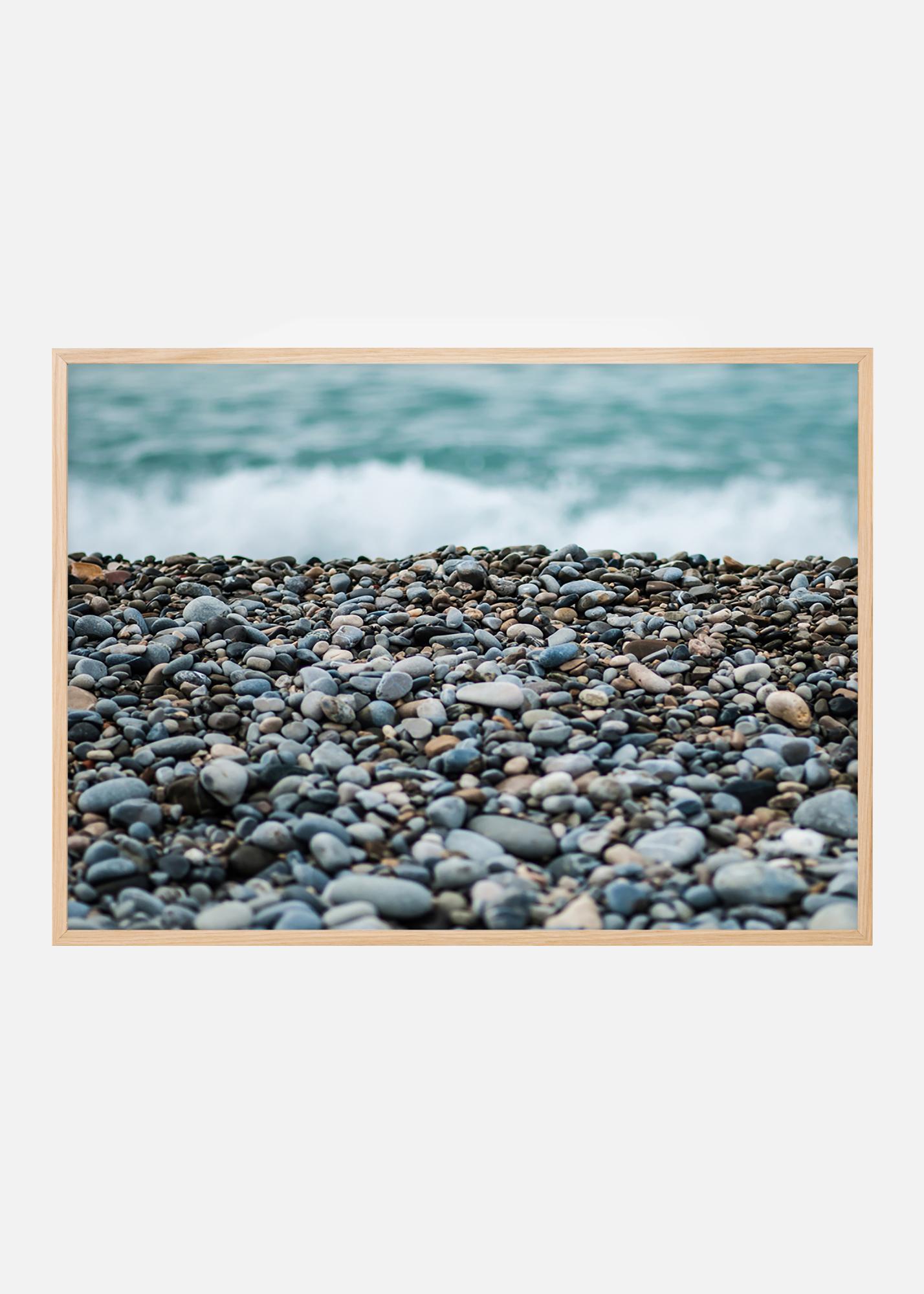 Slišite šumenje morskih valov s tega plakata z lepo kamnito plažo v ospredju. Kratka globinska ostrina ustvarja zanimivo sliko, ki pritegne oči v sliko. Ali najdete kakšen zaobljen košček stekla med kamni? Sivo-modra barvna paleta se lepo poda s tankim okvirjem na svetli steni, po možnosti z morskimi dodatki.