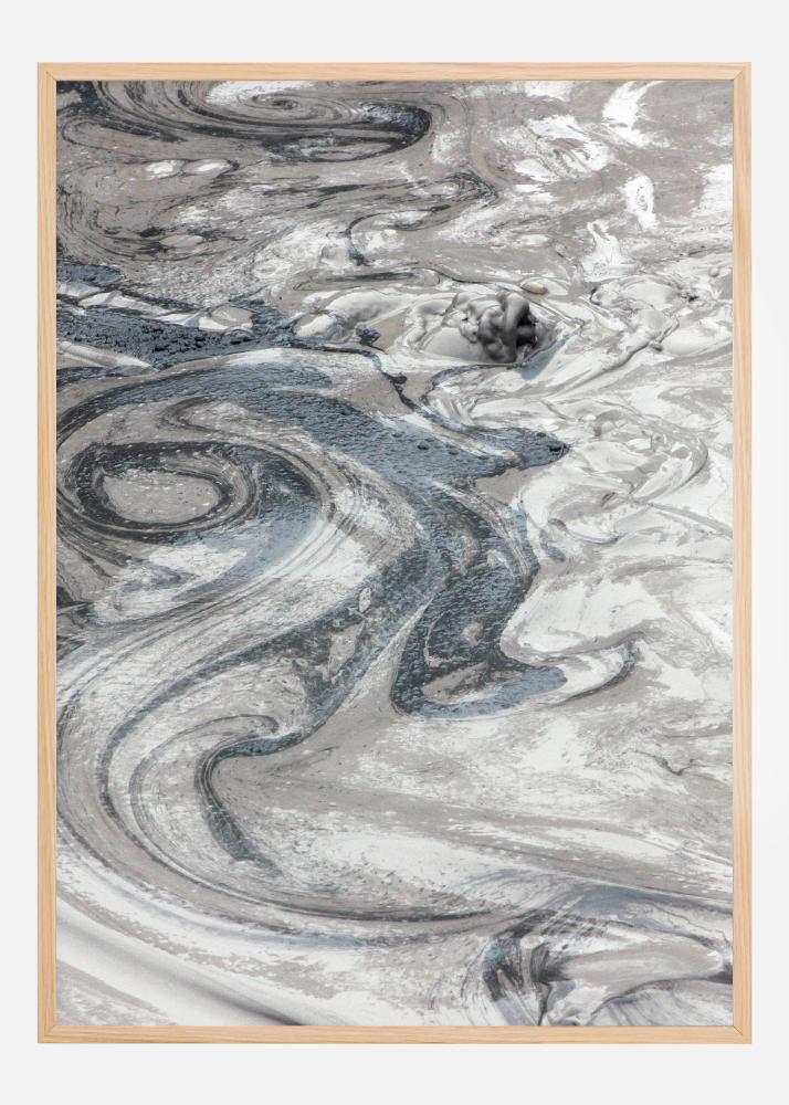 Osupljiva fotografija ilovnatokega toka, ki oblikuje čokoladno površino. Mehki črni, bež in beli vrtinci se popolnoma združijo in ustvarijo fantazijski vzorec. Za supermoderno dnevno sobo je to popoln poster, ki ga obesite na bež steno.
