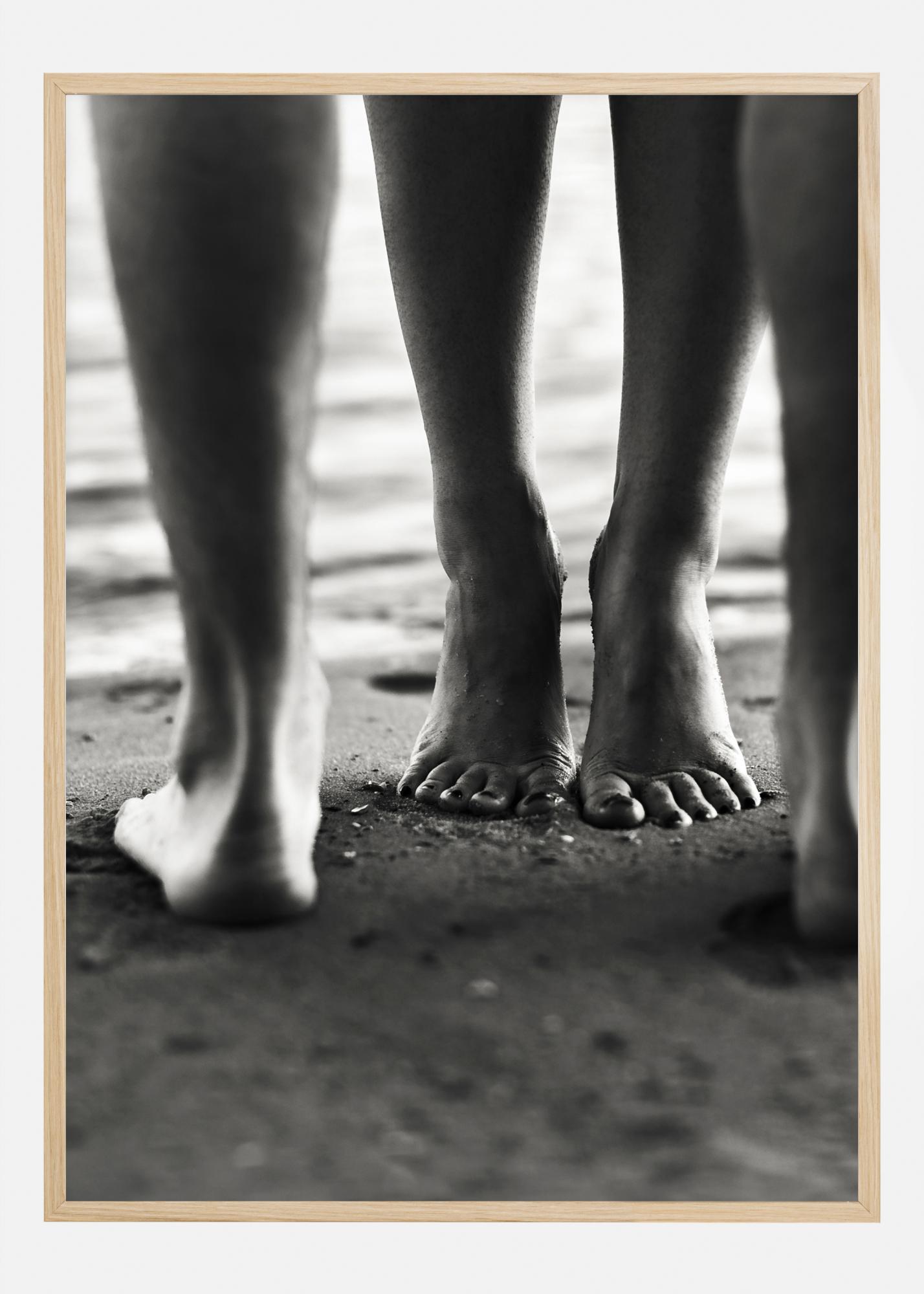 Romantični plakat s črno-belim bližnjim posnetkom štirih nog na plaži. Slika prikazuje dve osebi, ki stojita obrnjeni druga proti drugi. Pogled zlahka obstane na figuri, ki stoji na prstih. Ta čudovit tisk prinaša romantičen pridih in se prilega vaši spalnici, kadar želite pridih romantike.