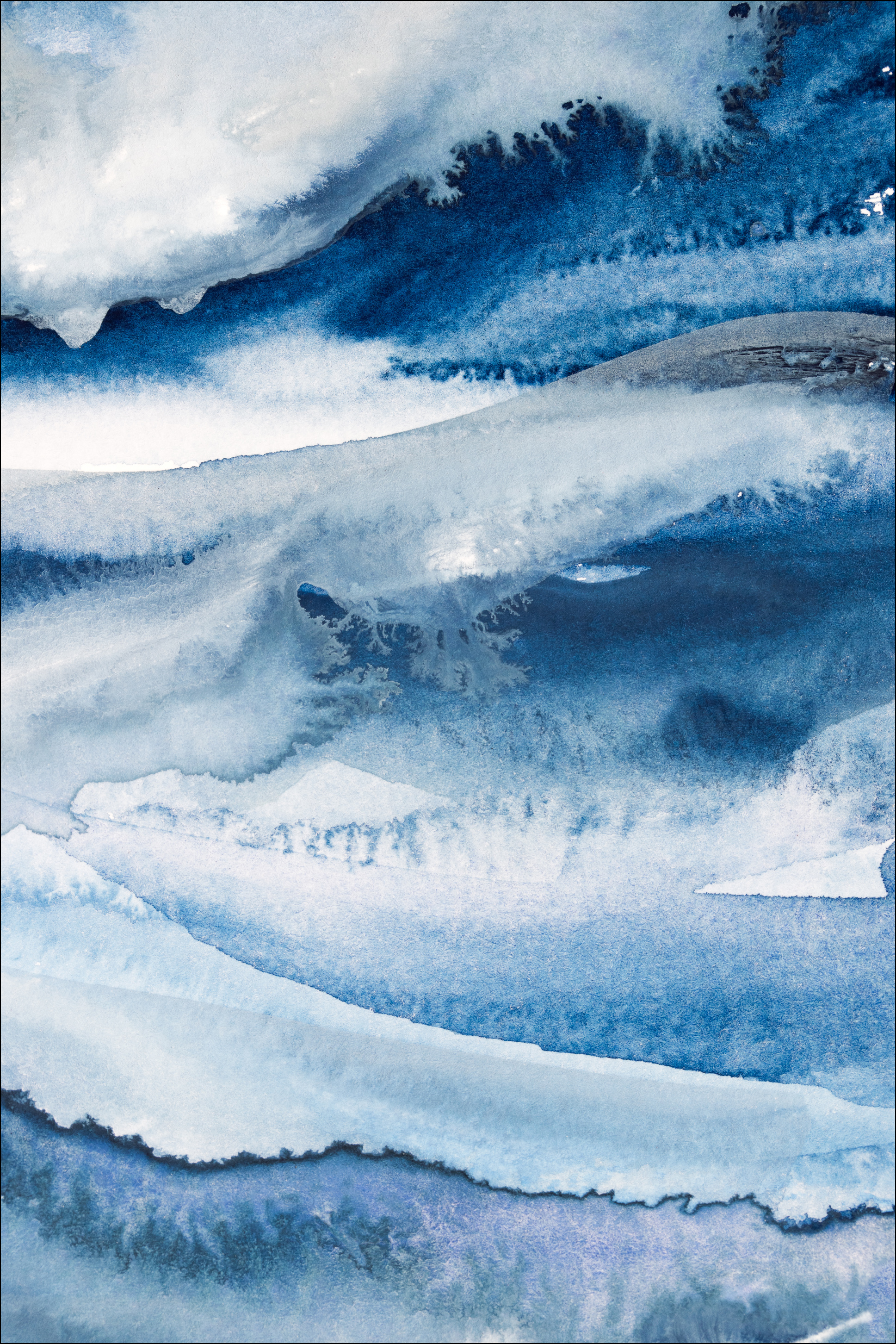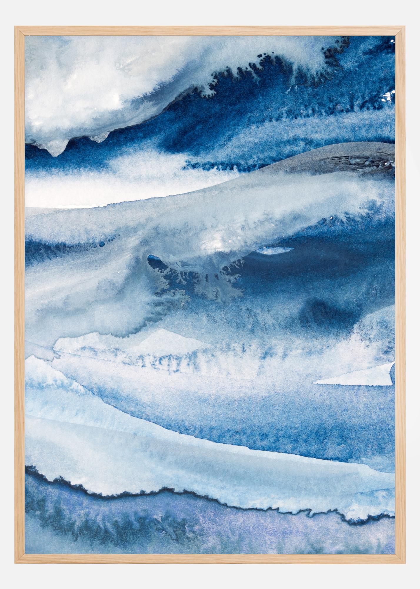 Lepa plakat z gibljivimi valovi morja. Bela pena prevladuje nad modro vodo, ko jo odnese morski veter. Različne odtenke modre barve ustvarjajo občutek hladu in skoraj lahko občutite svežino zraka, ko obesite ta čudovit tisk v svojem domu.