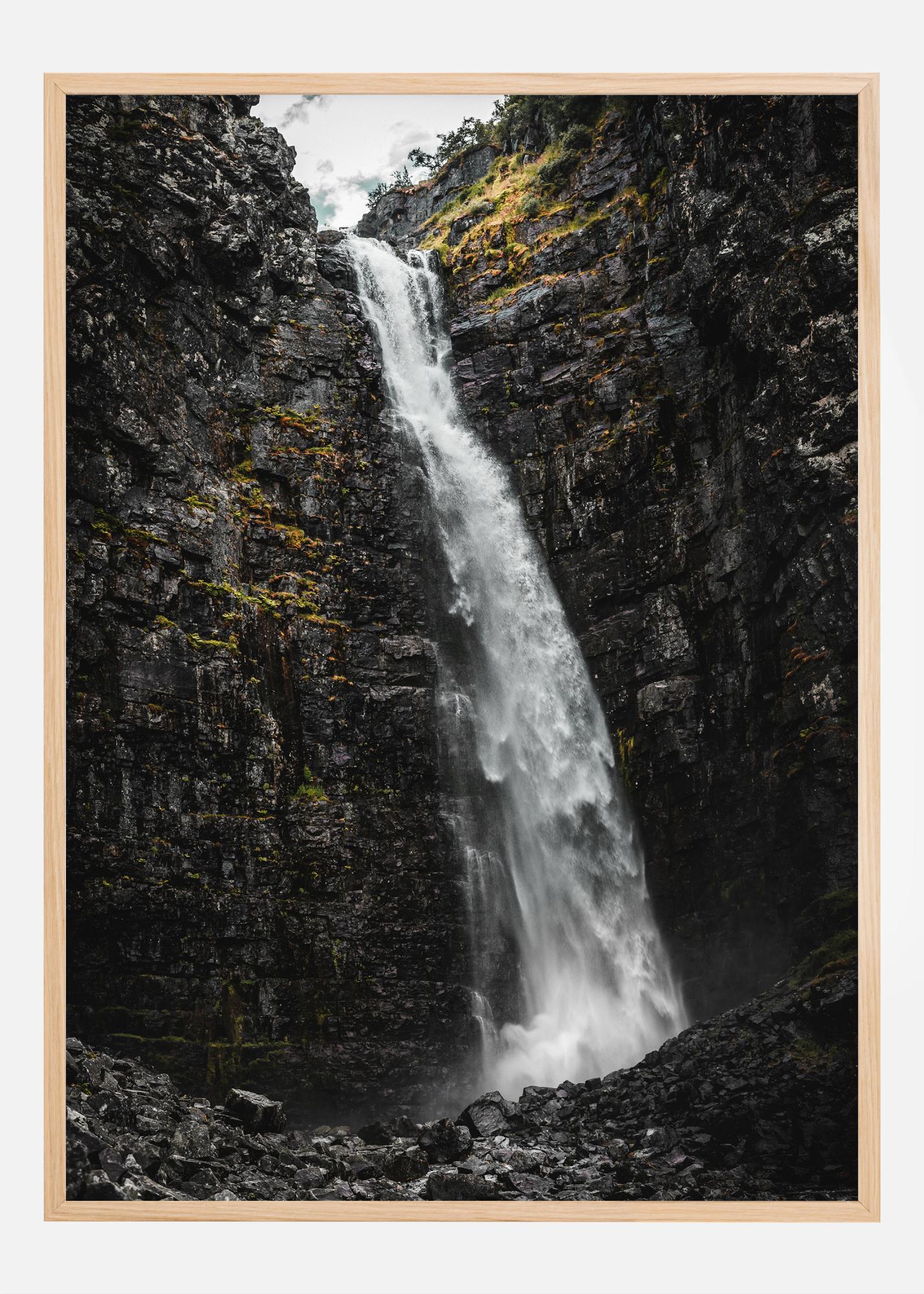 Ta provokativna poster prikazuje Njupeskär, najvišji slap na Švedskem, ki dramatično teče po skalnati pečini. Tisk prikazuje močno gibanje slapa in hladno, jasno vodo, ki trči v skale spodaj. Slap je obdan z temnimi, skoraj črnimi skalami, ki nasprotujejo belemu penu, medtem ko se mehka zelenjava oprijema površin skal. To je plakat, ki daje občutek surove moči in lepote narave ter je idealen dodatek za vse, ki cenijo čudeže narave.
