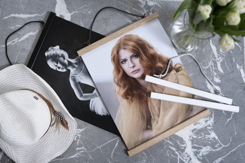 Postavitev posterja ali fotopovečave v eleganten obešalnik za posterje! Preprosta, pametna konstrukcija zagotavlja, da papir ostane raven in lep, ne da bi se poškodoval na robu. Ta različica je primerna za motiv s širino do 50 cm.
