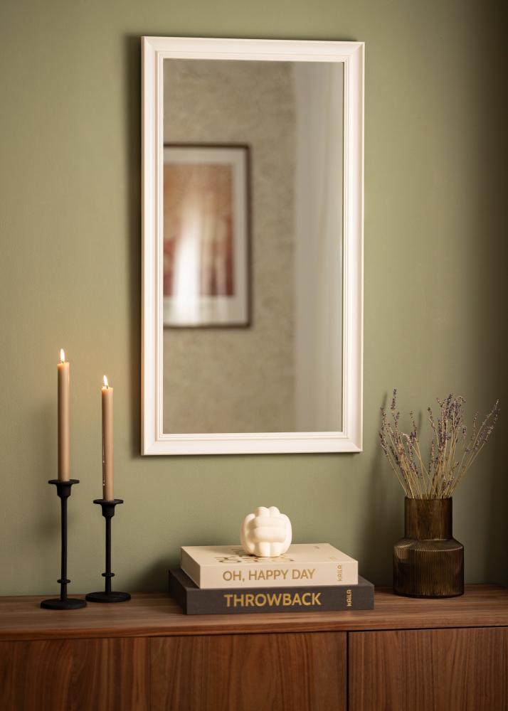 Začni izbiralec okvirja »Alice Vit je ogledalo, katerega okvir ima klasično strogo zasnovo z ravnimi linijami, ki so zasnovane tako, da usmerjajo pozornost na motiv.