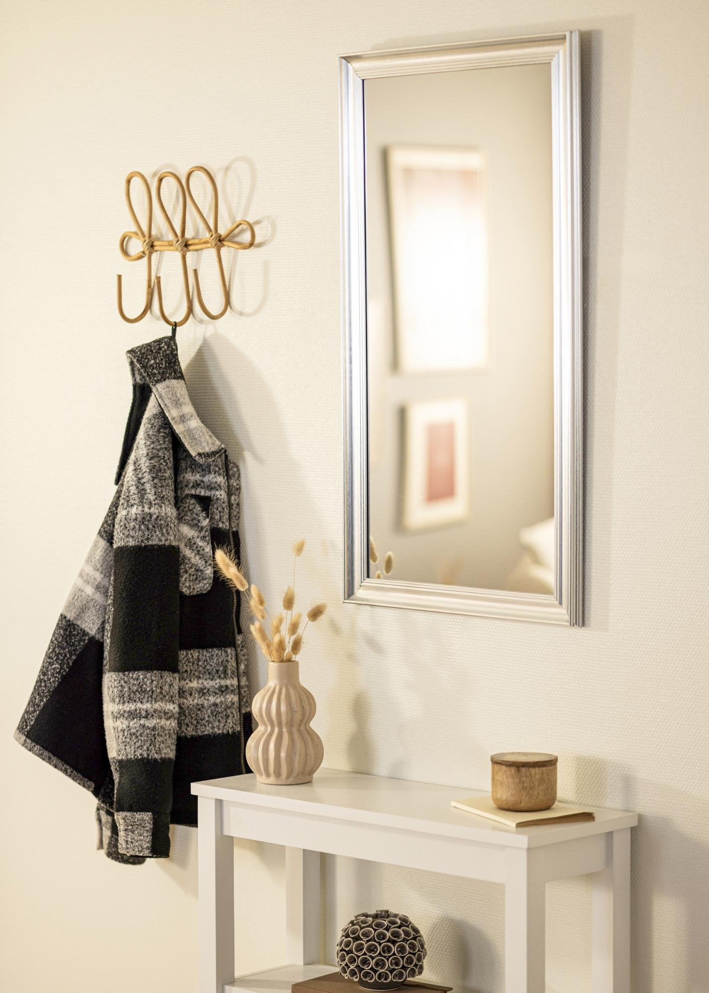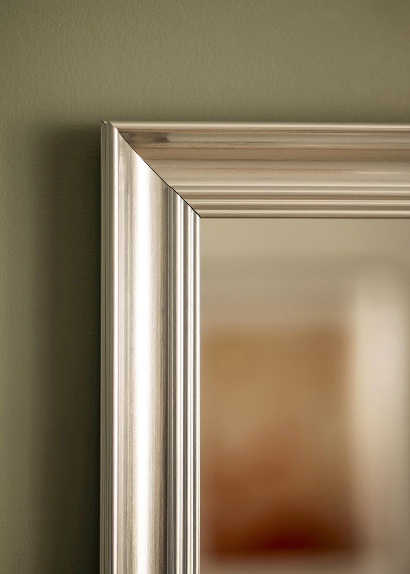 Začni izbiralec okvirja »Alice Silver je ogledalo katerega okvir ima klasično strogo zasnovo z ravnimi linijami, ki so oblikovane tako, da se osredotočijo na motiv.
