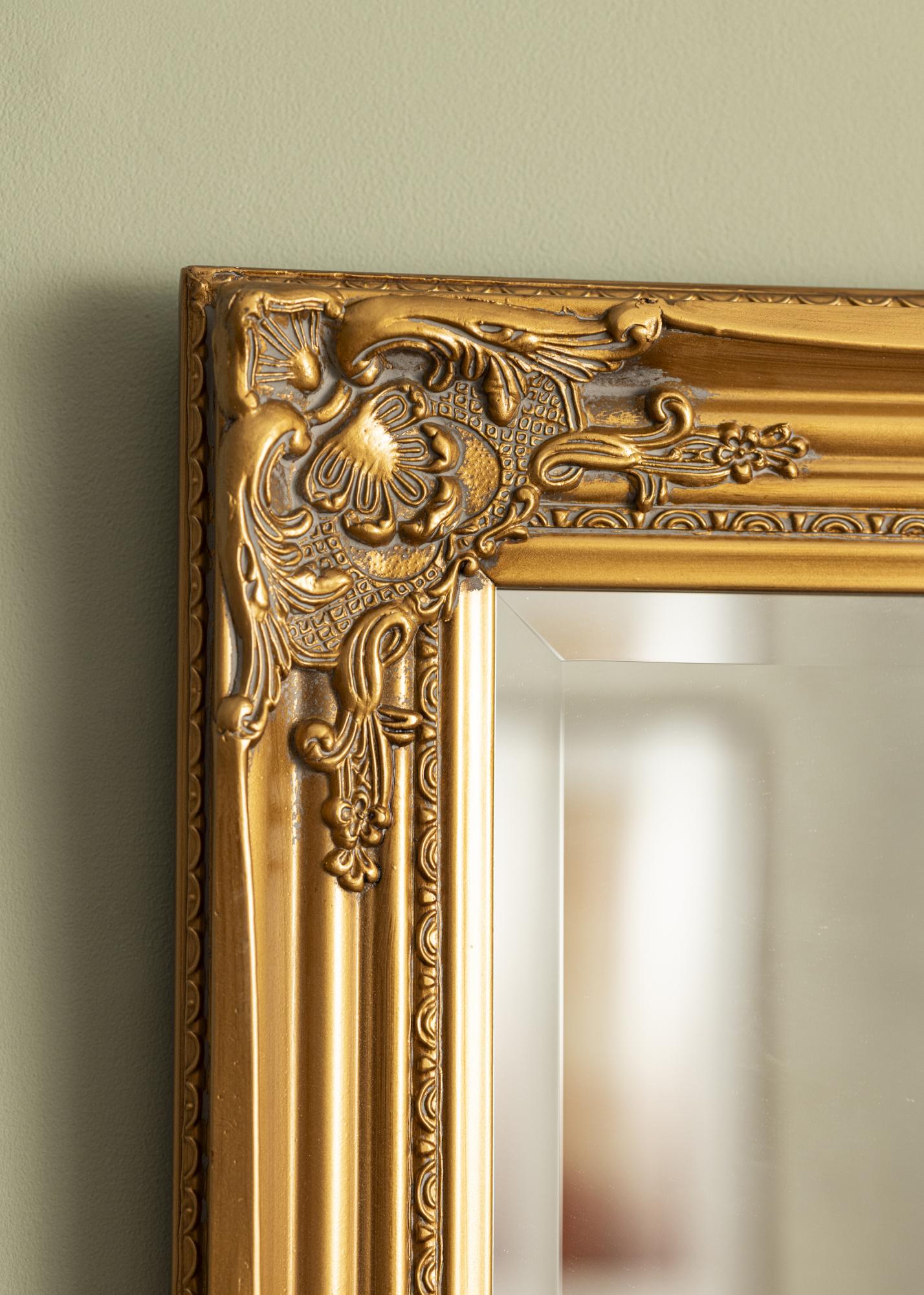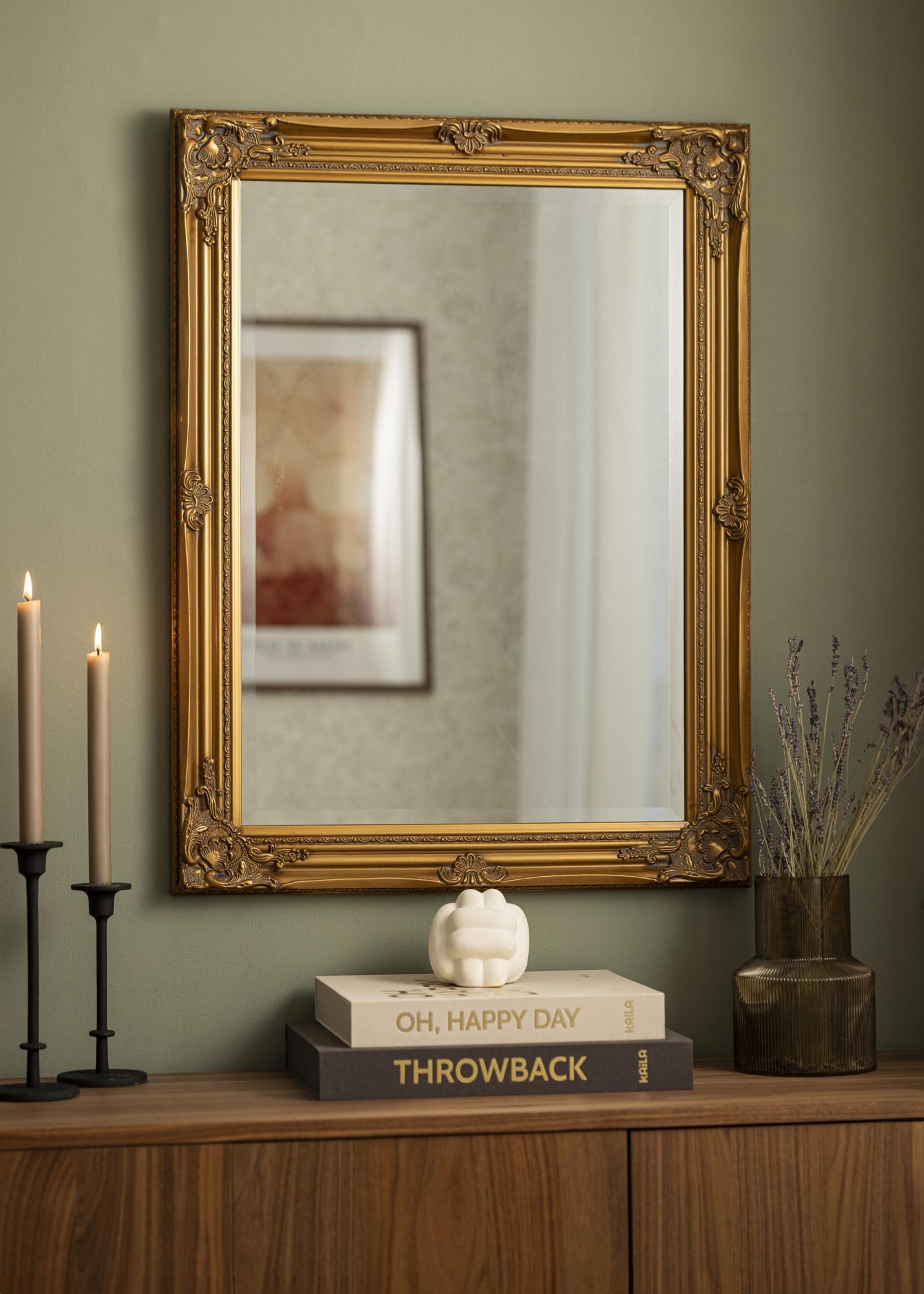 Zrcalo Antique Guld je stensko ogledalo s tradicionalno obliko in formatom. Ima leseni okvir z lepo klasično oblikovanim okrasjem, ki je ulito v ometu in nato naneseno na okvir. Ta okvir naredi ogledalo čudovit okras, ki bo pritegnil pozornost.