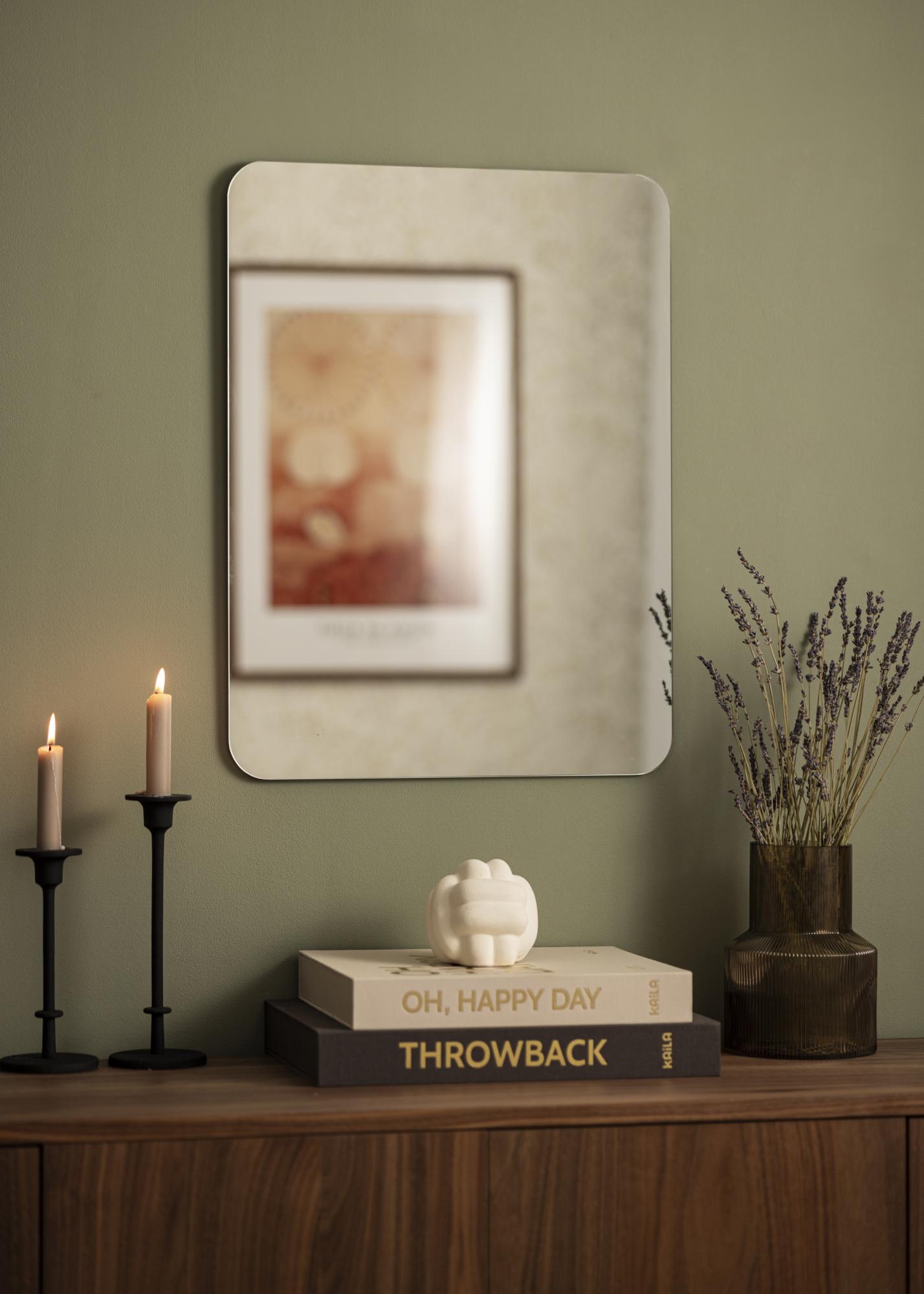 Z velikostjo 45x60 cm je ogledalo popolnih proporcij, da deluje kot funkcionalni poudarek v vašem domu. Ne glede na to, ali ga postavite v predsobo za zadnji pogled, preden greste ven, nad oknom v kopalnici za refleksijo svetlobe ali kot dekorativni element v dnevni sobi, to ogledalo bo povečalo svetlobo in prostor prostora. Sami izberite, katera stran naj bo obrnjena navzgor in ustvarite osebni pridih v vašem domu s tem vsestranskim in stilskim ogledalom.