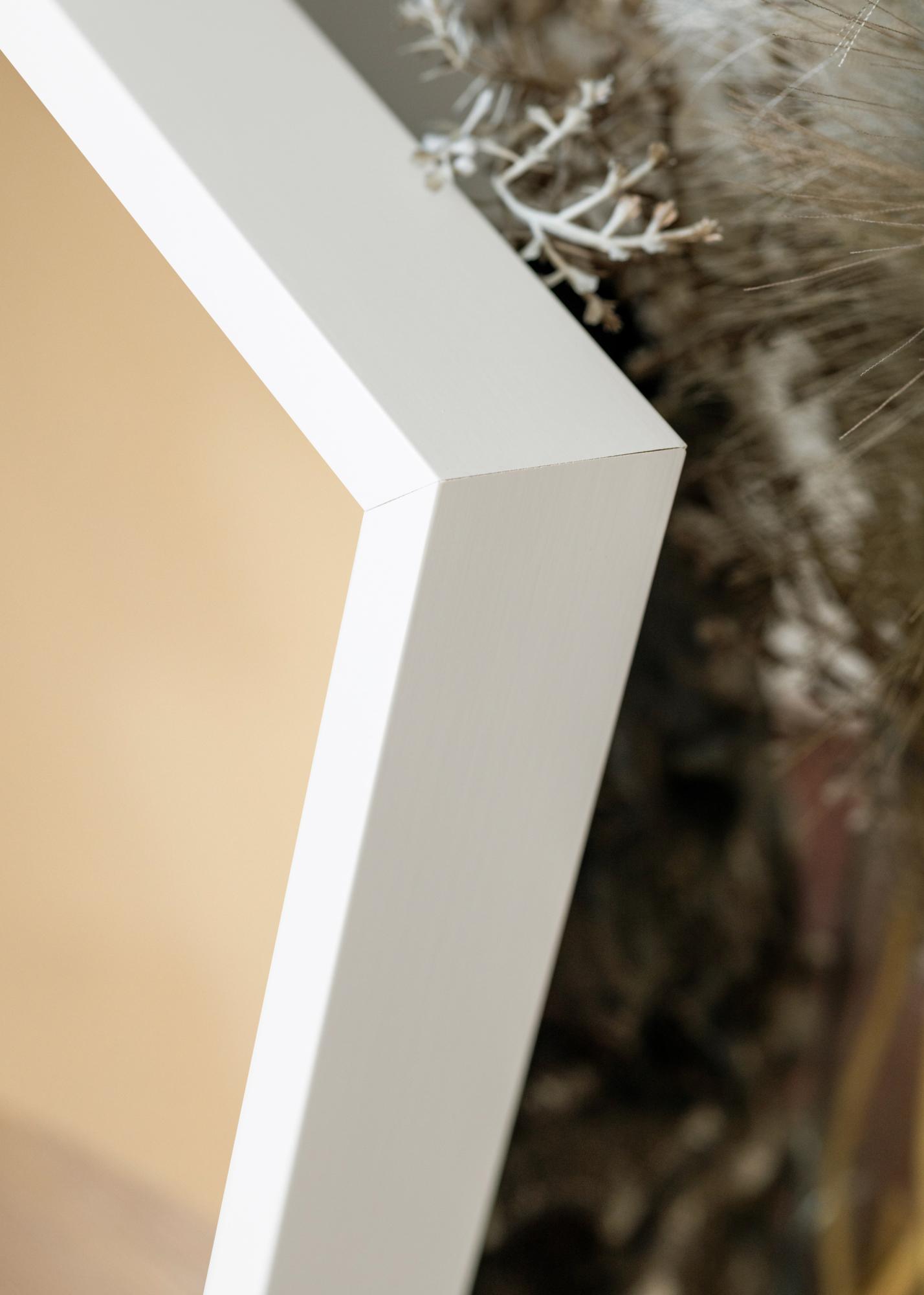 Okvir Ogledala Balder Bela je širok 20 mm in izdelan iz bora, kar zagotavlja stabilno in trpežno konstrukcijo. Globina ogledala je 45 mm, kar pomeni, da deluje trdno brez da bi zasedalo preveč prostora. Ozka okvirna letvica prispeva k minimalističnemu dizajnu, ki omogoča, da ogledalo pride v ospredje.