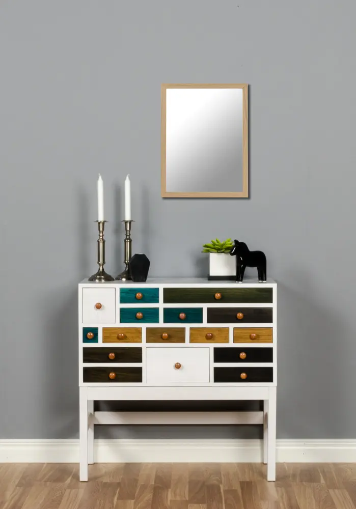 Ustvarite naravni občutek v domu z dodatki za opremo iz hrasta! To elegantno ogledalo je izdelano po vaših lastnih merilih in je na voljo tako v majhni obliki, ki se dobro prilega nad pohištvo, kot tudi v veliki obliki za steno hodnika. Ujemite lepo naravno barvo s tekstilom, okraski in svečami v beli, zeleni in rjavi barvi!