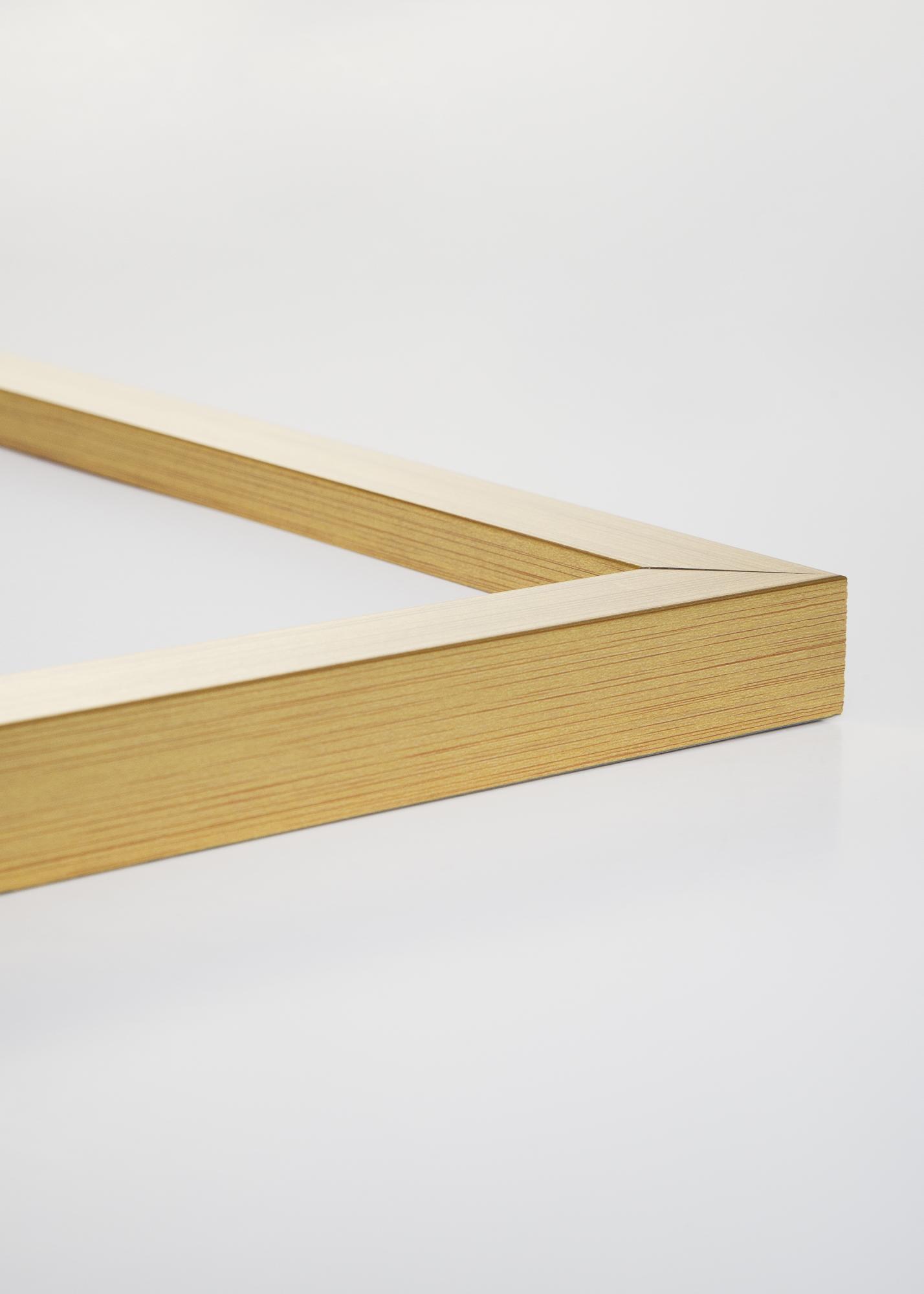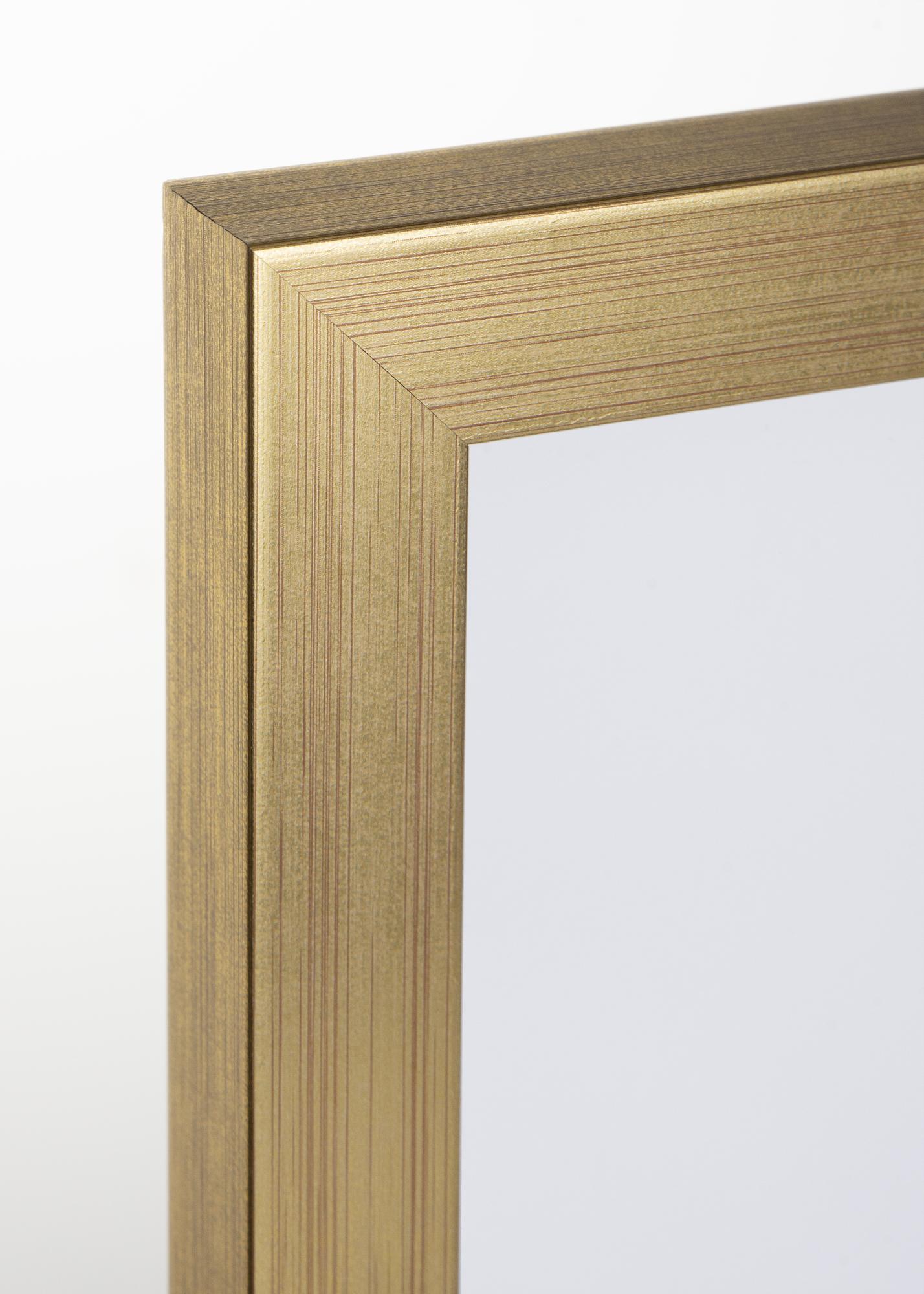 Zlato obarvan okvir daje ogledalu eleganten in razkošen občutek, ki se poda k večini stilov notranje opreme. Okvir je širok 20 mm in ima globino 20 mm, kar ogledalo naredi stabilno in robustno. Izdelano iz folirane smreke, ogledalo združuje vzdržljivost in čist dizajn.