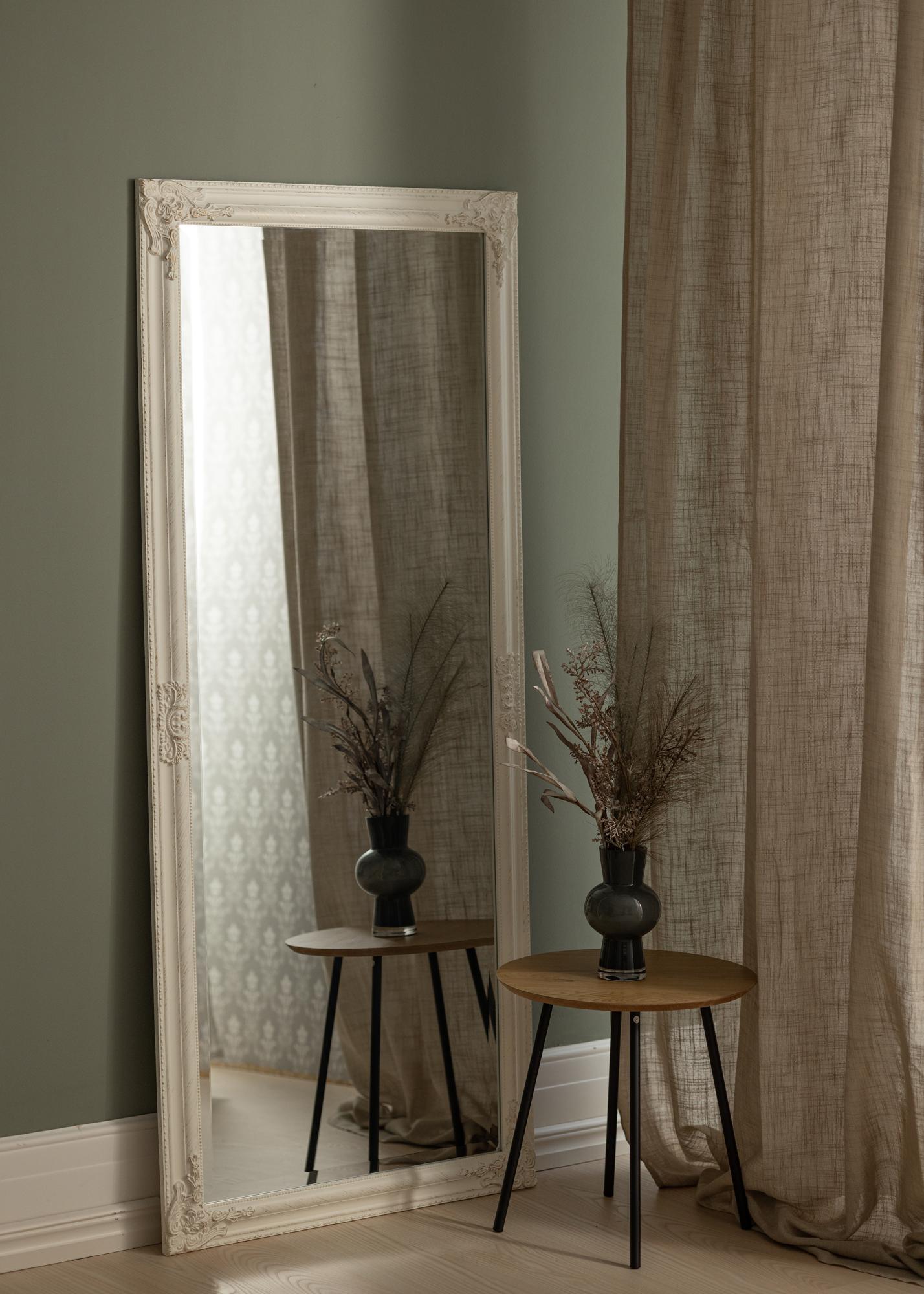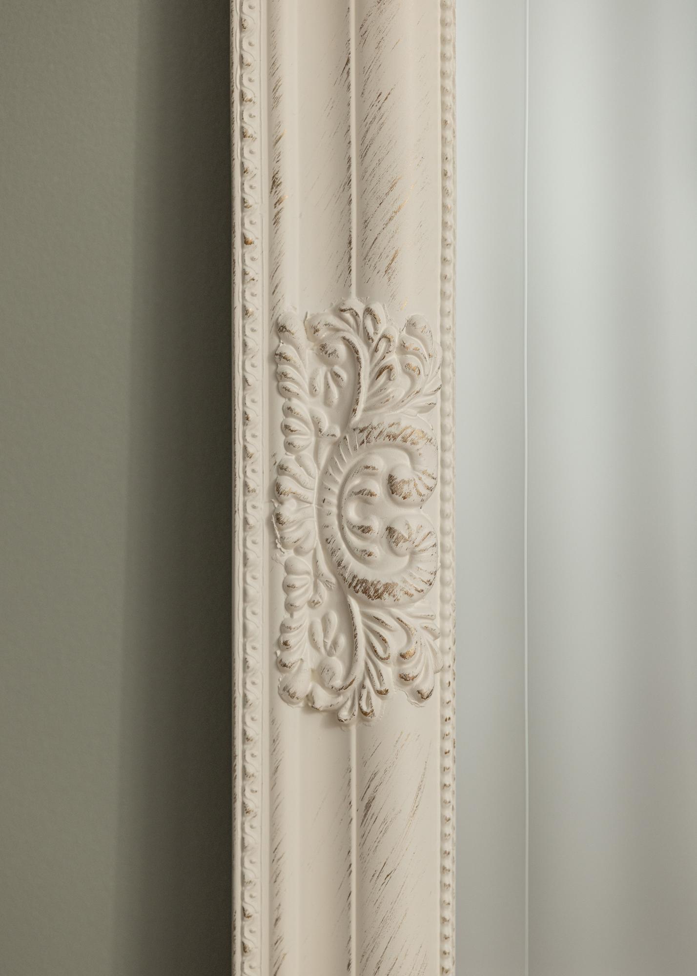 Odkrijte elegantno eleganco z našim pravokotnim ogledalom, popolno kombinacijo klasičnega šarma in sodobne preprostosti. S svojimi velikodušnimi dimenzijami 70x160 cm to ogledalo ponuja praktično in dekorativno funkcijo v vašem domu. Bela okvir je bogato okrašen s podrobnostmi, ki spominjajo na pretekle čase, medtem ko čista oblika ohranja dizajn aktualen in enostaven za ujemanje z drugo opremo vašega doma.