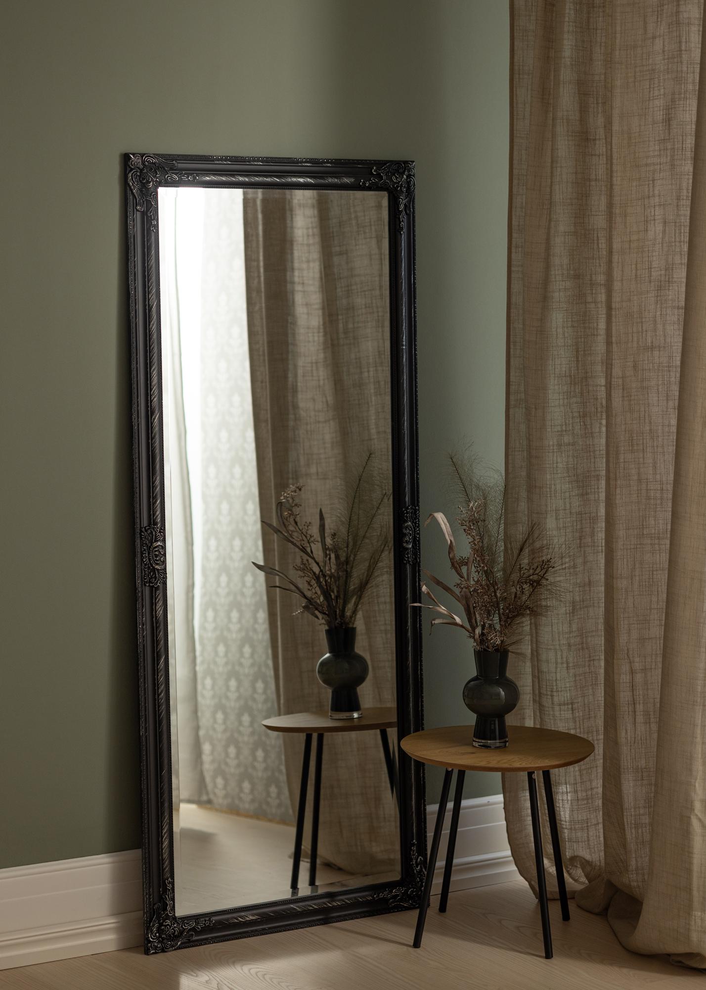 Odkrijte elegantno in prefinjeno obliko z našim stoječim ogledalom, popolnih dimenzij 70x160 cm, ki zagotavlja popolno odsevnost. To ogledalo predstavlja stoječo, pravokotno obliko, ki dopolnjuje tako moderne kot tradicionalne stile notranje opreme. Črni okvir je skrbno oblikovan z izbranim dizajnom, ki v kateri koli prostor vnese občutek razkošja.