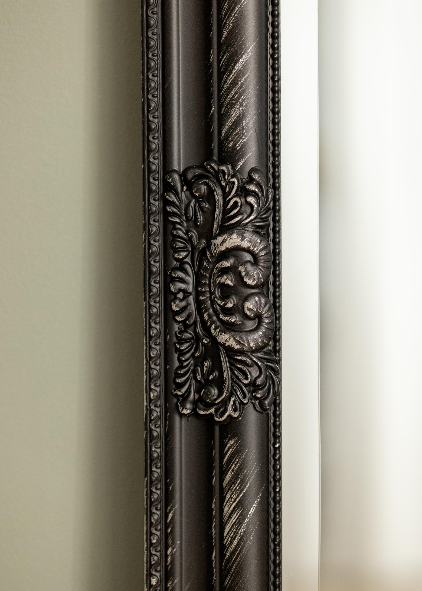 Globoka črna barva okvirja ustvarja dramatičen kontrast s čistim zrcalnim steklom, kar povečuje svetlobo in prostor v vašem domu. To ogledalo ni samo praktičen predmet, ampak tudi umetniški dekorativni detajl, ki pritegne pogled in doda značaj vaši steni. Njegova pravokotna oblika in stoječa usmeritev ga naredita idealnega za spalnice, hodnike ali dnevne sobe, kjer želite dodati element sloga in funkcionalnosti.