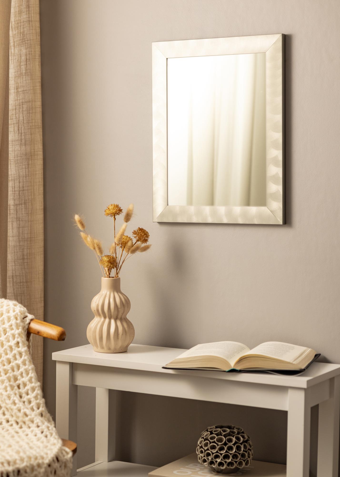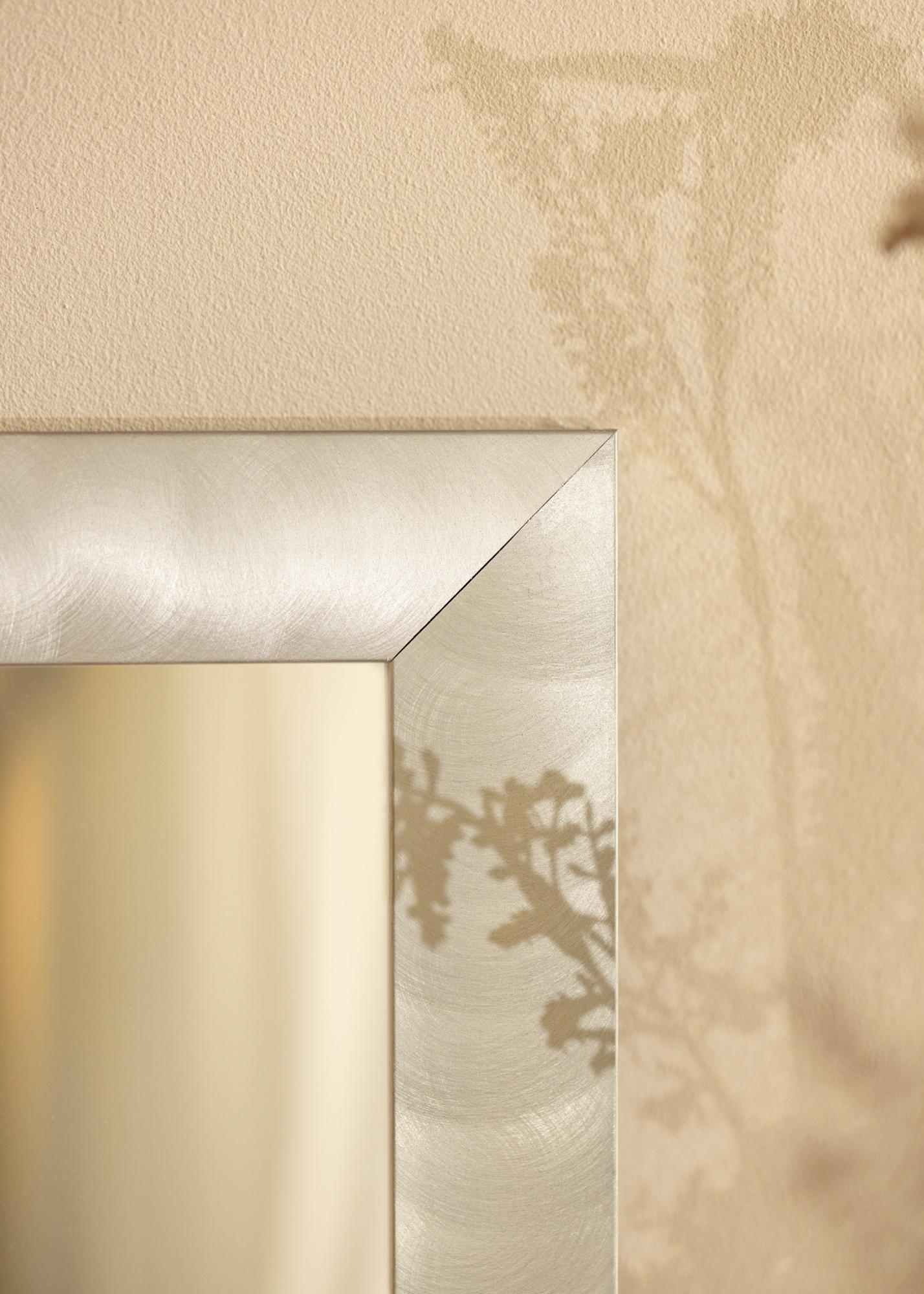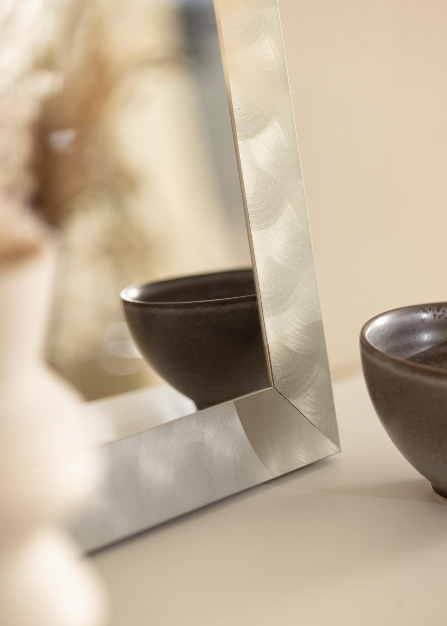 Diskretno ogledalo s gladkim, širokim okvirjem, izdelanim v Nemčiji iz visoko kakovostnega aluminija. Okvir ima videz svetlega živahnega jekla in s svojim čistim oblikovalskim jezikom se ogledalo dobro prilega tako minimalističnemu kot podeželskemu domu ter ustreza vsem vrstam prostorov. Obesite ogledalo v prostoru s slikami, ki imajo okvire v srebru ali črni barvi, in kombinirajte z dodatki v sivih odtenkih, da ohranite enoten stil.