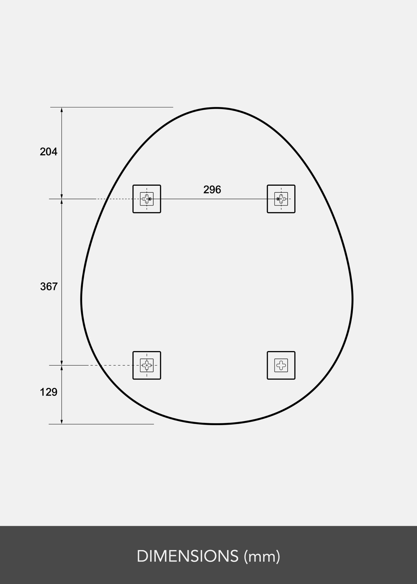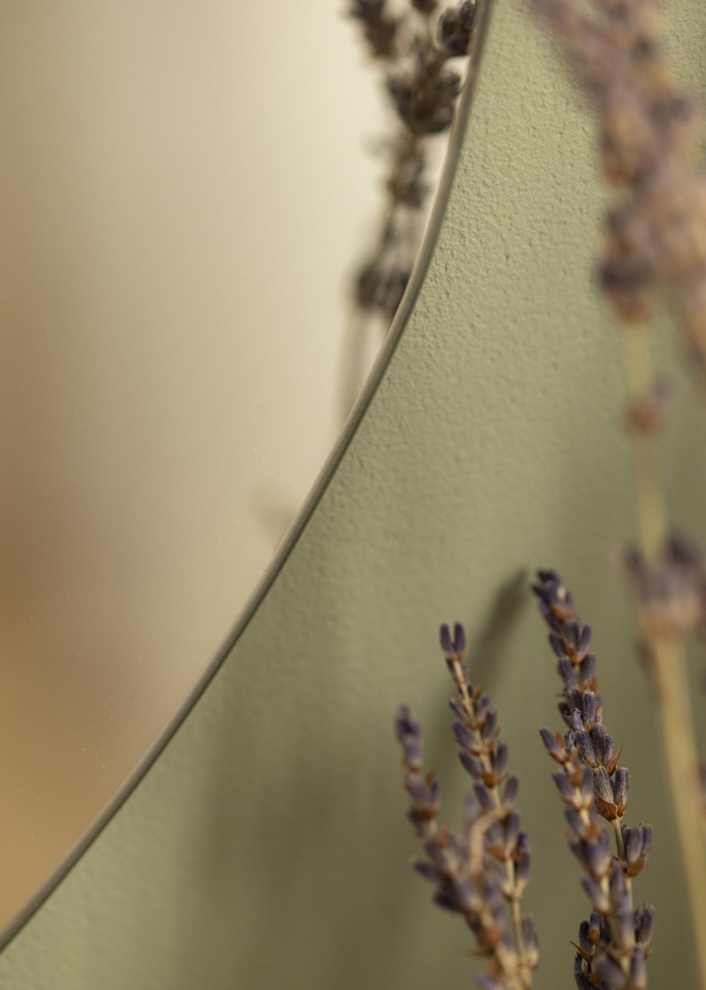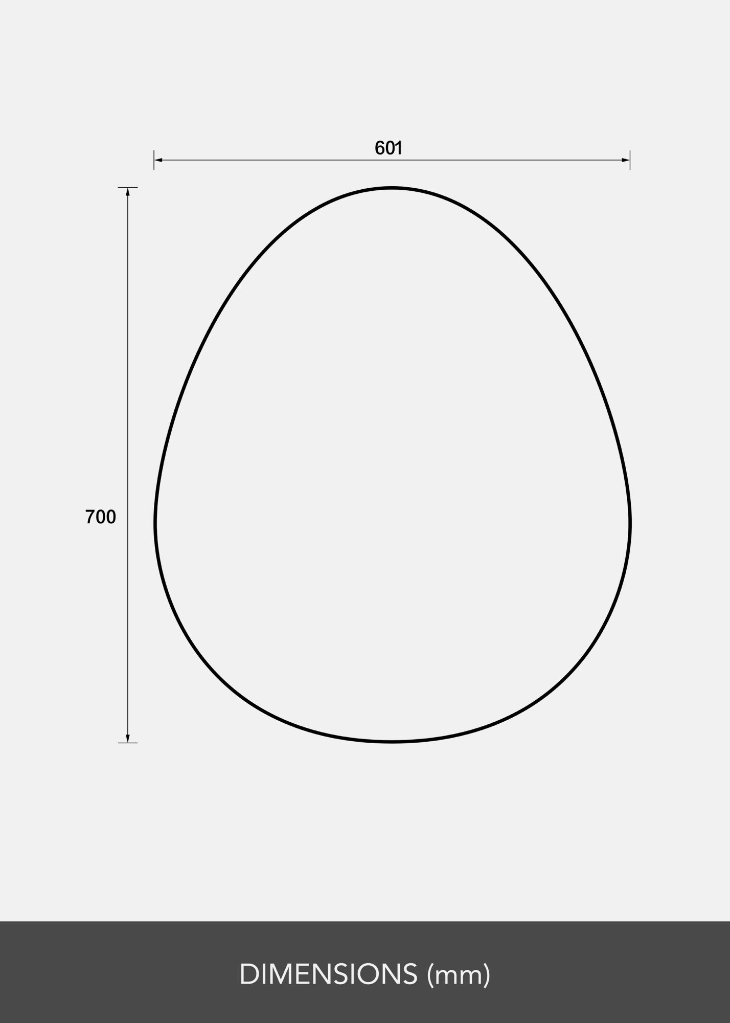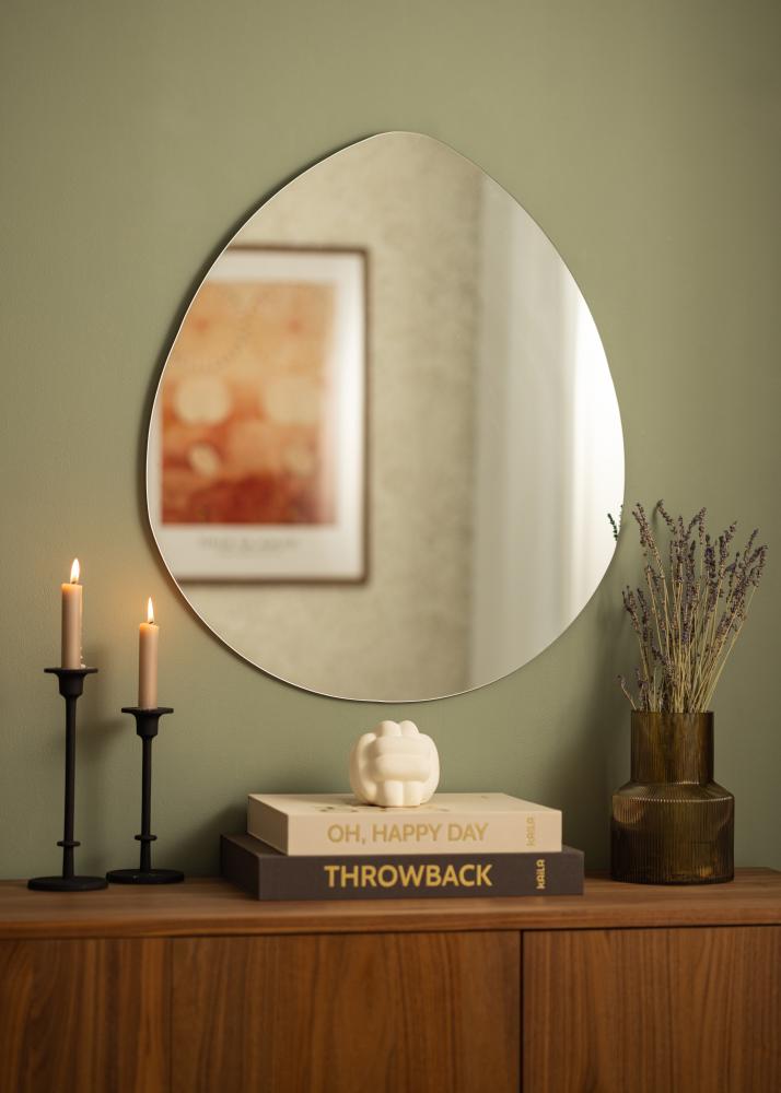 Ogledalo ima zaobljeno, jajčasto konturo s ploščatim dnom, kar mu daje mehko in moderno estetiko. Njegova edinstvena oblika ga poudari iz množice in naredi zanimiv začetek pogovora. Ni samo ogledalo, ampak tudi umetniško delo, ki polepša vaš dom.