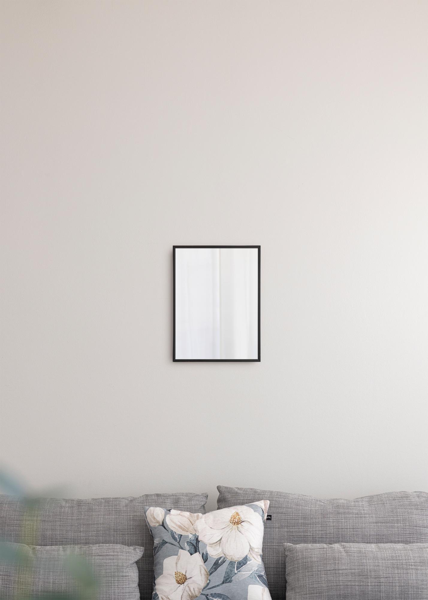 To stensko ogledalo je popolna kombinacija stila in funkcionalnosti. Okvir je izdelan iz aluminija in je komaj 10 mm širok, kar daje eleganten, minimalističen videz. Ogledalo je del serije stenskih ogledal v različnih barvah in velikostih, od katerih je to črna različica v velikosti 31,1x41,1 cm.