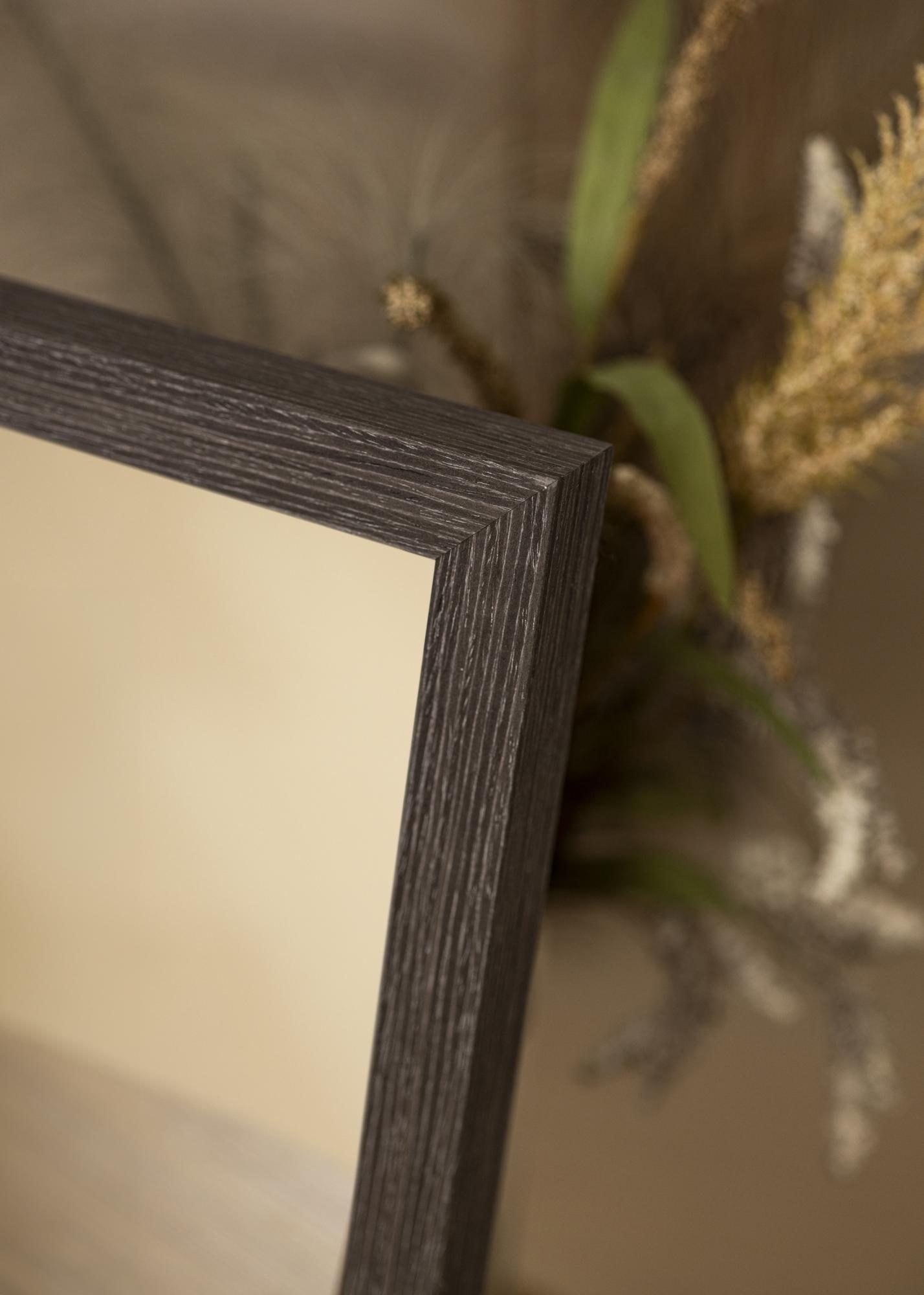 Globok, skoraj črno-rjav odtenek barve omogoča, da tekstura lesa pride do izraza skozi rahlo mat površino, kar ogledalu daje sofisticiran in moderen izgled. Ozek in raven profil prispeva k diskretnemu in elegantnemu videzu, ki se prilega večini stilov notranje opreme. Ne glede na to, ali ga postavite v predsobo, spalnico ali dnevno sobo, bo Ogledalo Cotswold Siva eleganten dodatek vašemu domu.