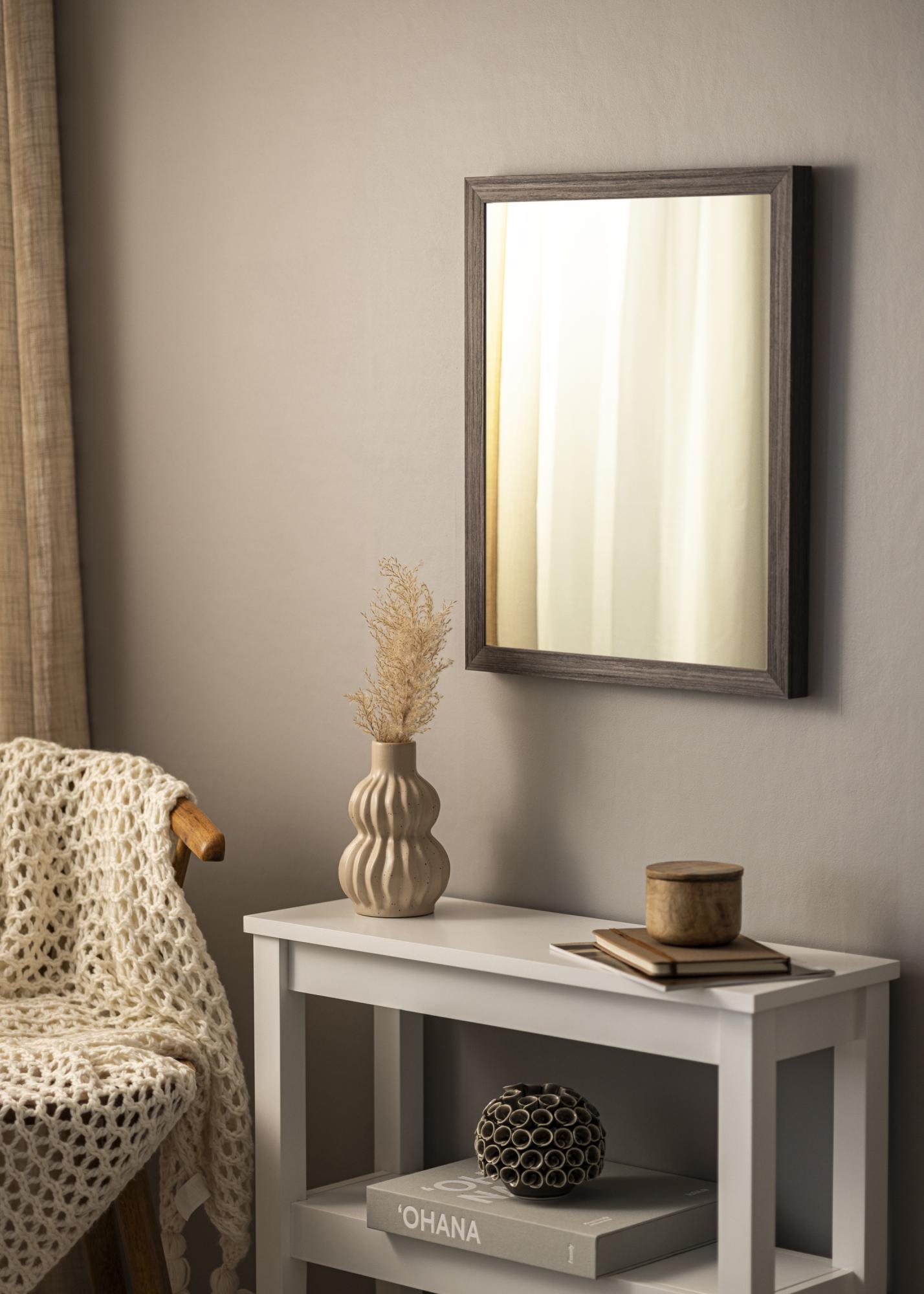 Ogledalo Cotswold Siva je ogledalo po meri, ki ga izdelamo mi, da ustreza vašim potrebam. Z okvirjem širine 28 mm in globino 33 mm, to ogledalo ponuja popolno ravnotežje med funkcionalnostjo in estetiko. Okvir je izdelan iz bora in ima temen lesen zaključek z jasno vidno teksturo, kar poudarja njegov naravni videz in daje prostoru toplo in vabljivo občutje.