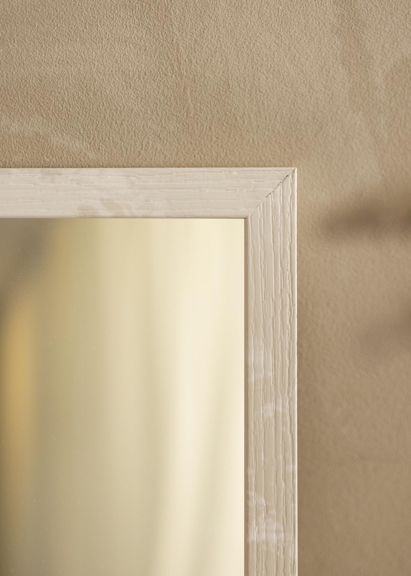 Izdelana iz ayous lesa, ima to ogledalo svetlo kremno barvo, ki jo dopolnjuje jasno razpoznavna lesna struktura. Naravni in živi občutek je okrepljen s površino z mat zaključkom, kar poudarja subtilne žile v lesu. To ustvarja mehak in organski značaj, ki prostoru daje toplo in prijetno vzdušje.