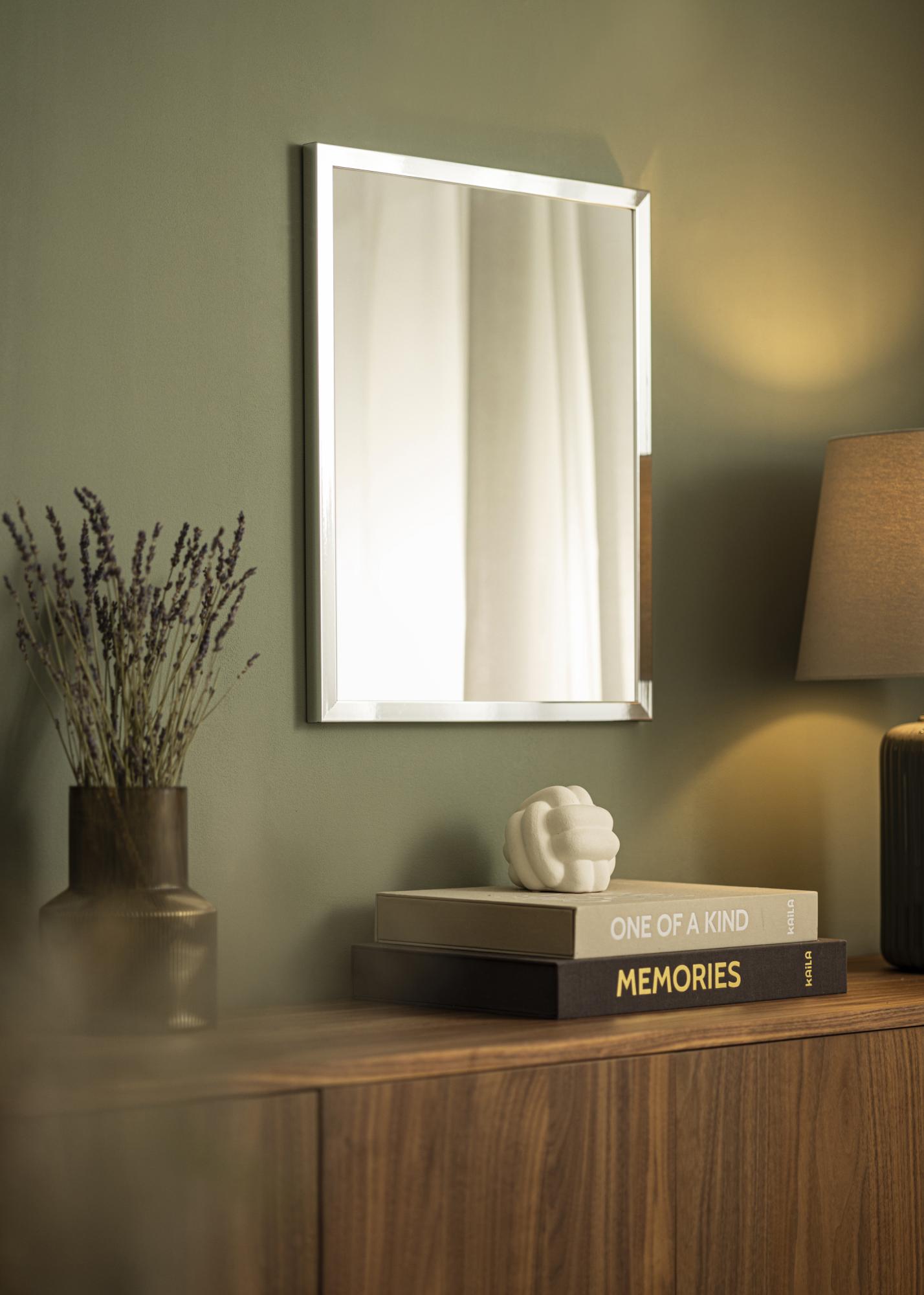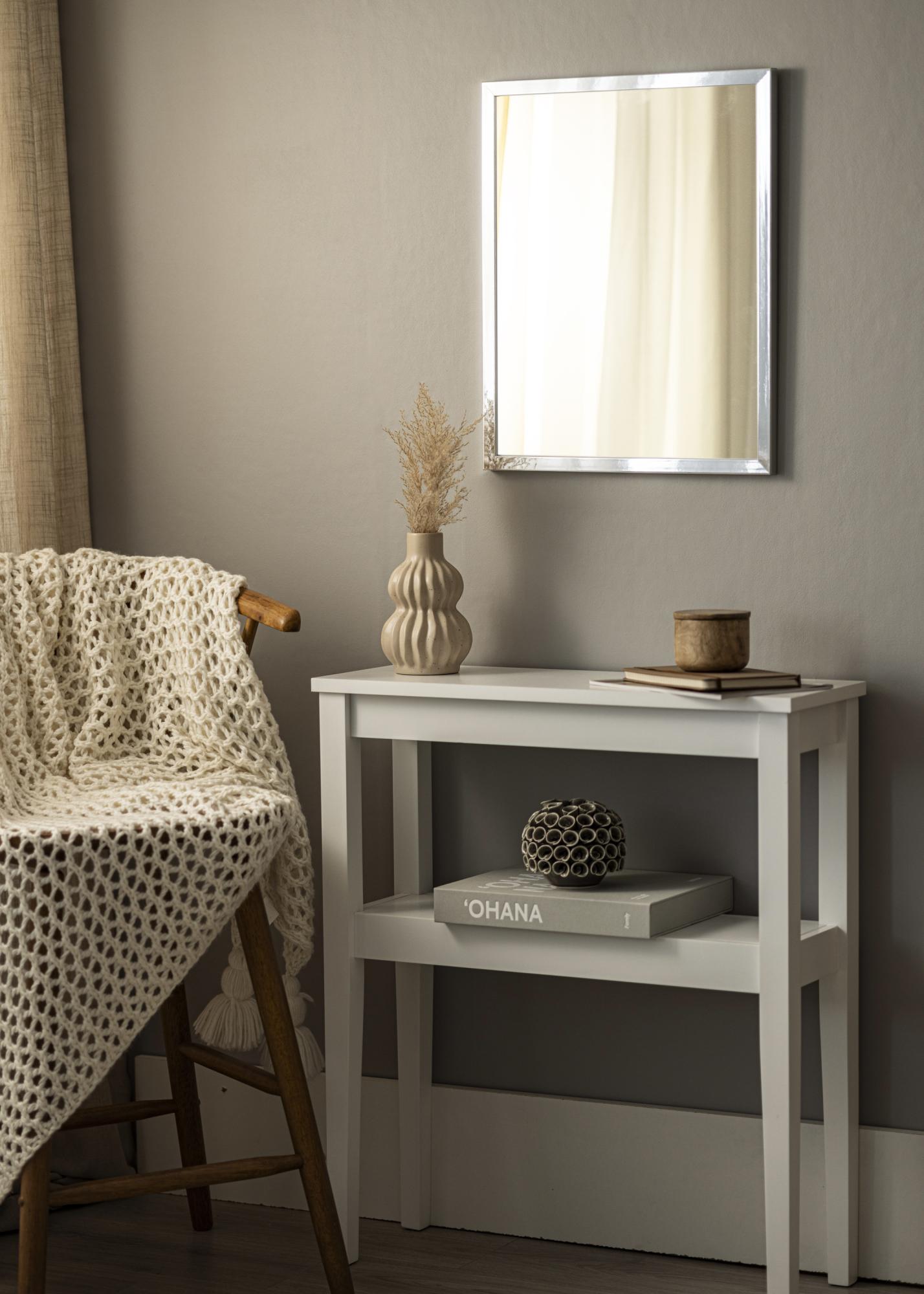 Zrcalo Devon Silver je zrcalo po meri, ki ga izdelamo mi, kar pomeni, da ga lahko dobite v natančnih dimenzijah, ki najlepše ustrezajo vašemu domu. S svojo elegantno srebrno obdelavo in zrcalno površino postane eleganten dodatek v kateremkoli prostoru. Odseva svetlobo na način, ki ustvarja sodobno in vabljivo vzdušje, idealno za ustvarjanje občutka prostora in svetlobe v prostoru.