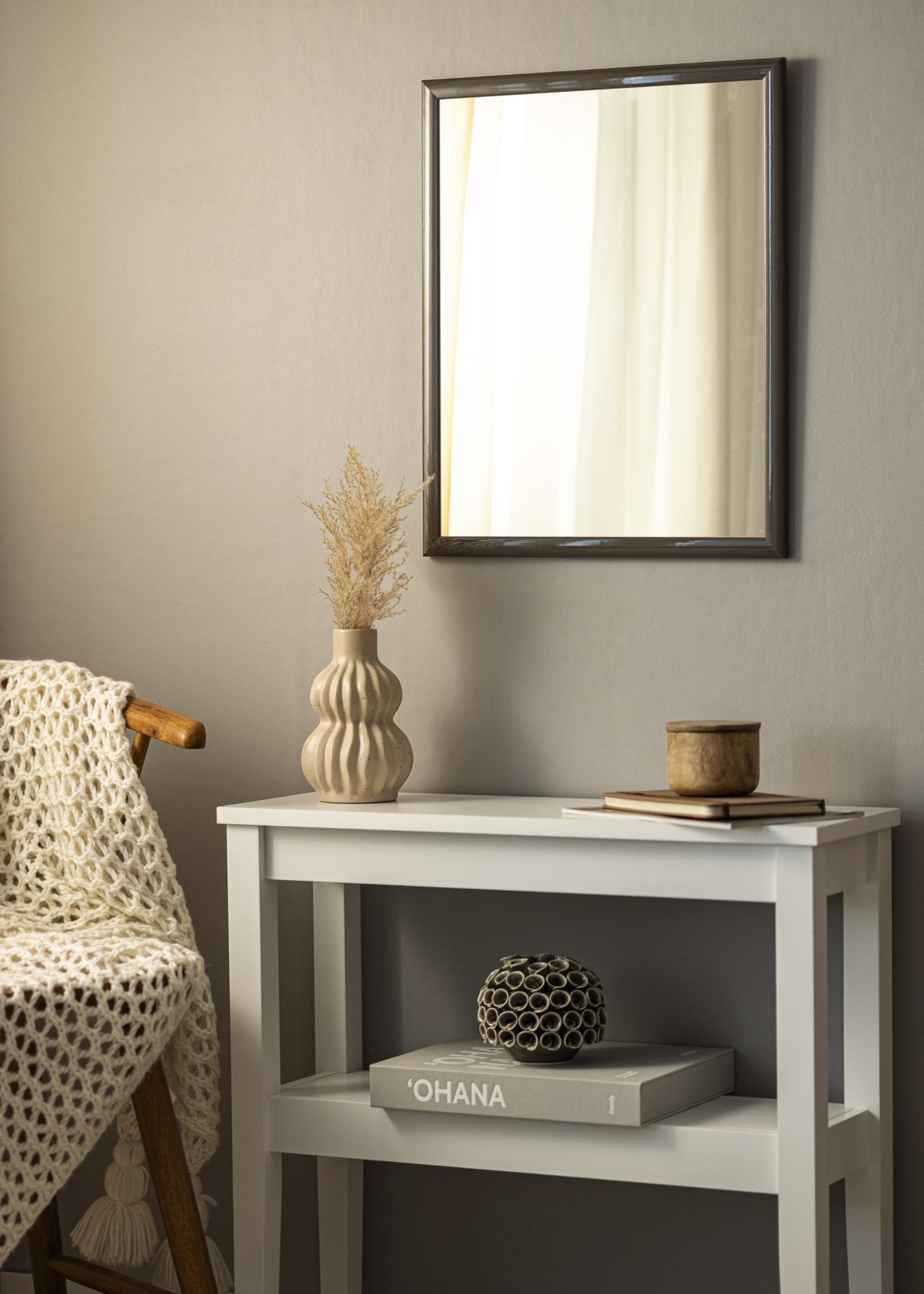 S svojo temno sivo barvo in visoko sijajem ponuja Ogledalo Dorset elegantno in odsevno površino, ki resnično pritegne oko. Gladko lakiranje poudarja globino barve in ustvarja živahen izraz, ki daje prostoru sofisticiran občutek. Sijajna površina ujame svetlobo na način, ki daje dinamičen sijaj glede na kot, zaradi česar ogledalo postane osrednji del notranje opreme.