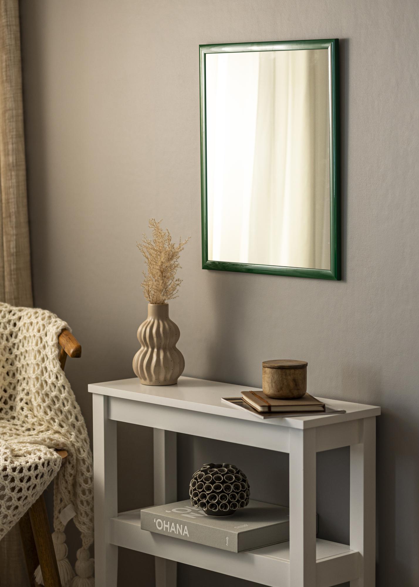Ogledalo Dorset Zelena je ogledalo po meri, ki ga izdelamo mi, kar pomeni, da ga lahko dobite v natančnih merah, ki najbolje ustrezajo vašemu domu. S svojo globoko zeleno barvo in visoko sijočim zaključkom postane to ogledalo eleganten dodatek kateremu koli prostoru. Lakirana površina poudari intenzivno barvo in dinamično odseva svetlobo, kar ustvarja živahno vzdušje.