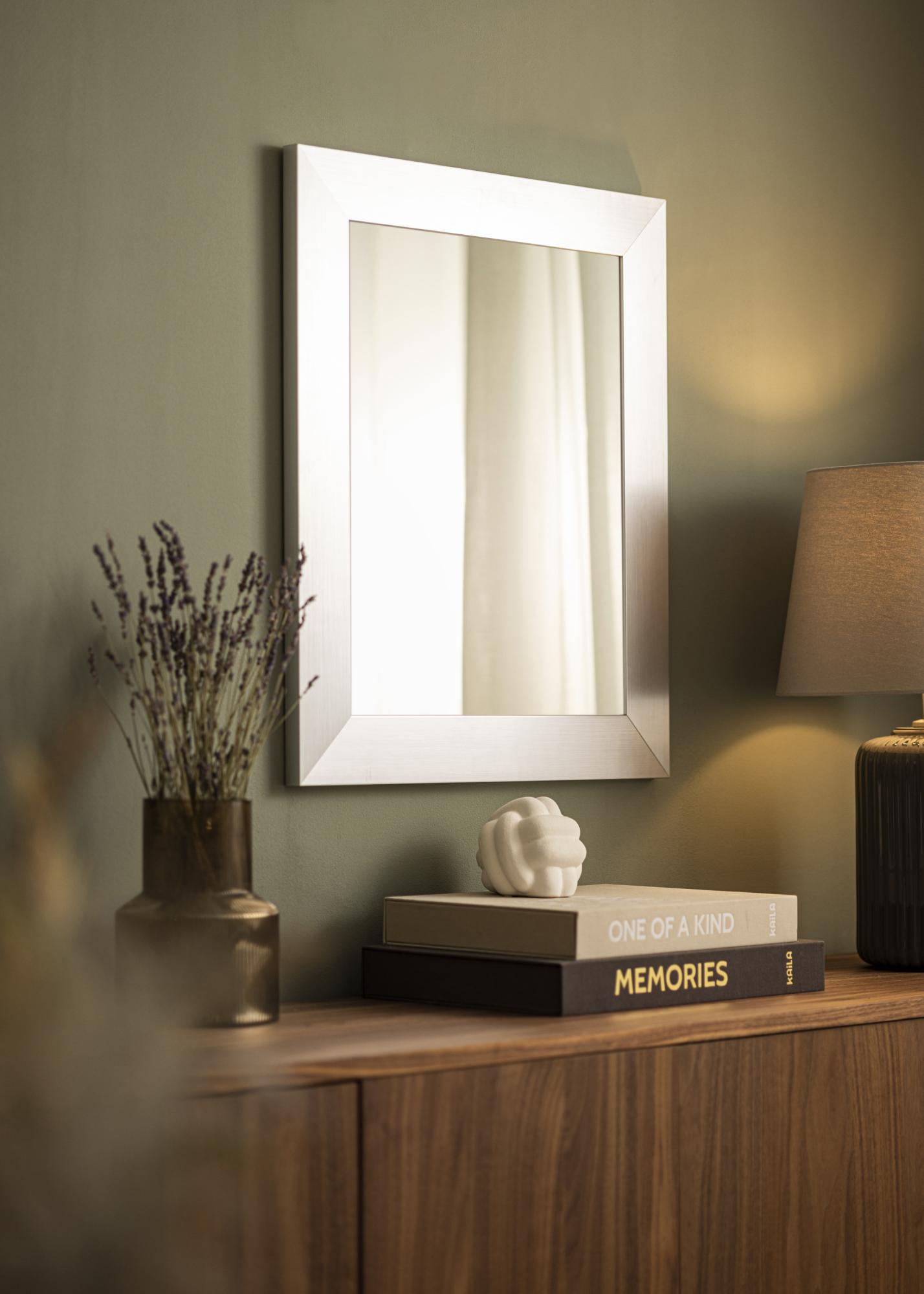 Ogledalo Dover Gladko Srebro je elegantno in stilno ogledalo, ki ga izdelujemo z veliko skrbnostjo. To ogledalo je popolno za vas, ki iščete sodoben notranji element z dotikom luksuza. S svojo široko okvirjem v brušeni srebrni barvi daje prefinjen vtis in se odlično ujema v tako modernih kot klasičnih okoljih.
