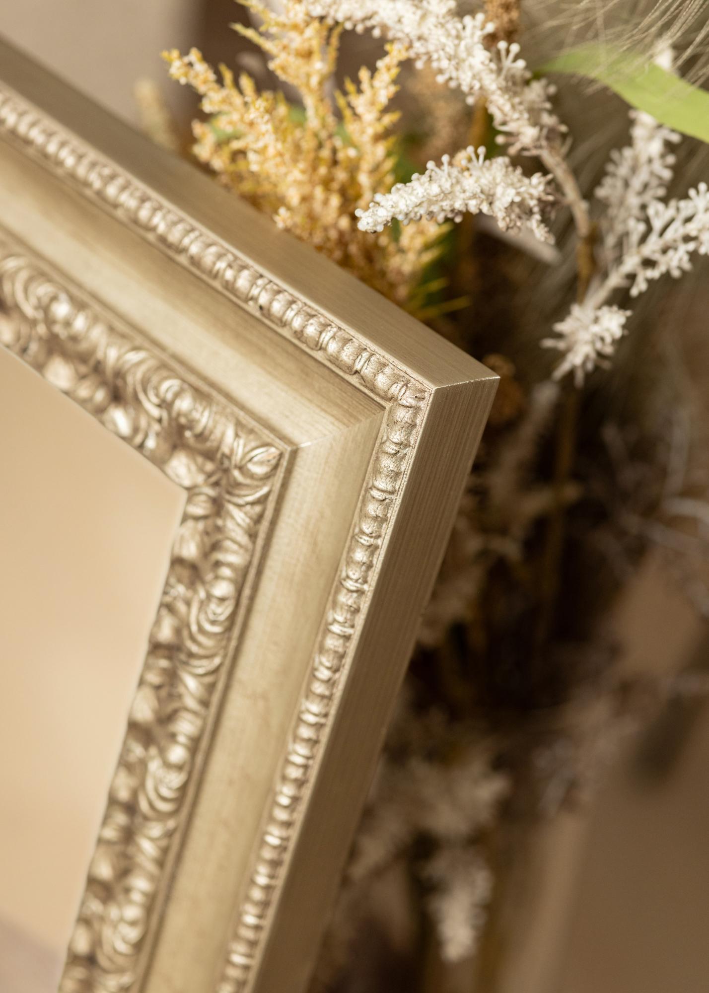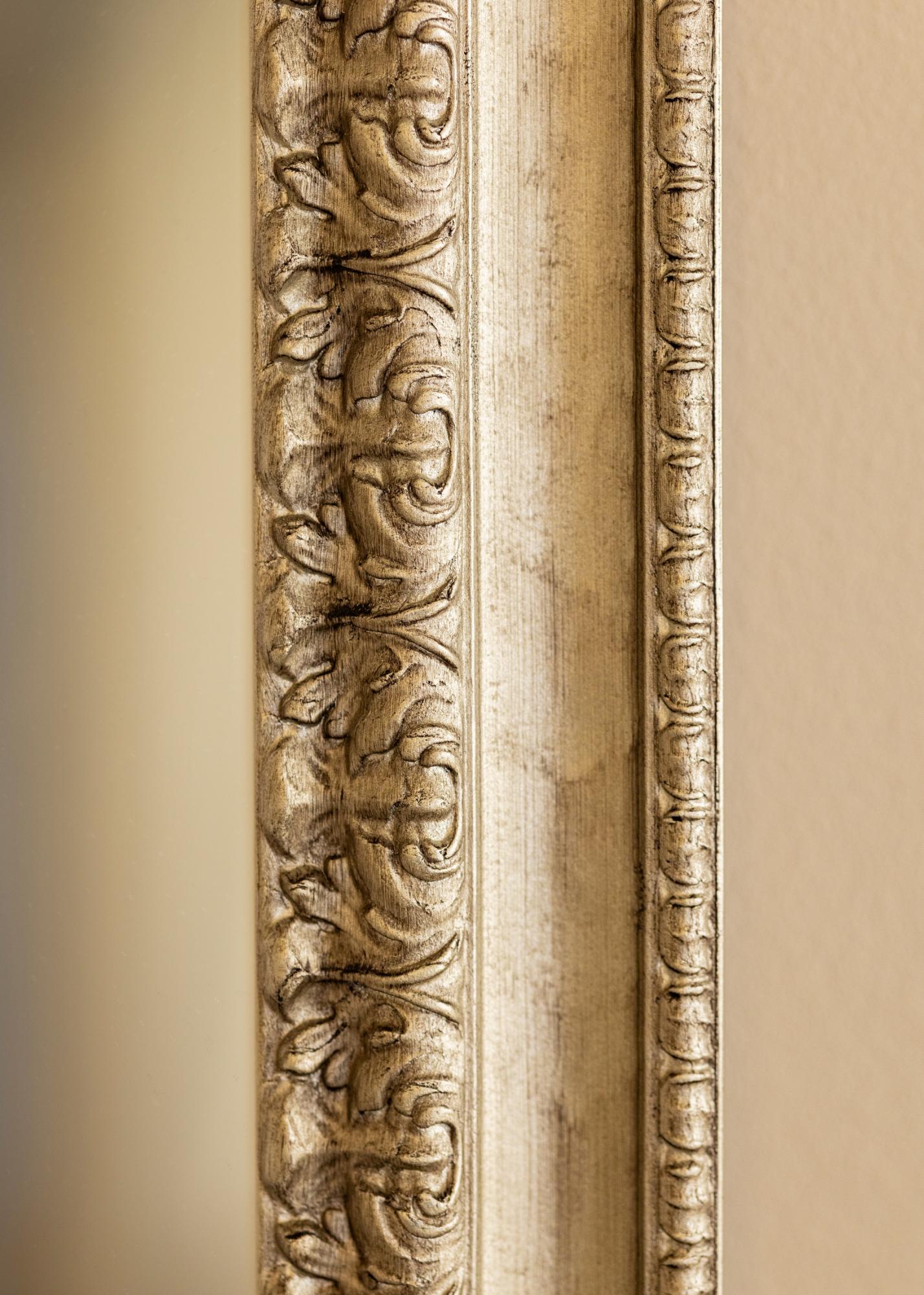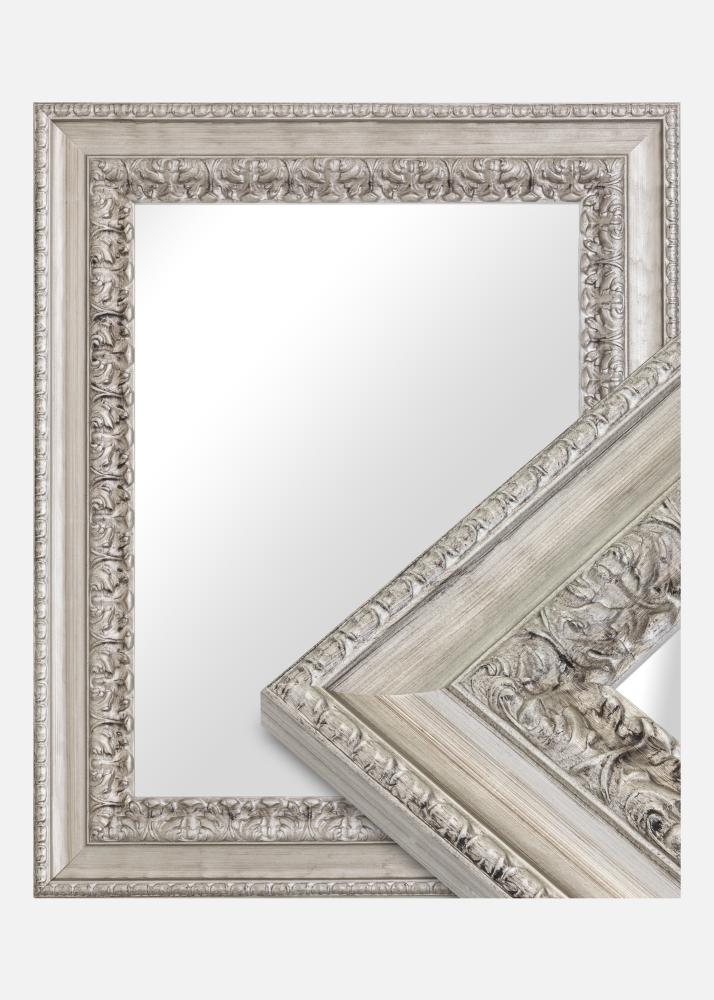 Ogledalo Drottningholm Silver III je ogledalo po meri, ki ga izdelujemo mi, da bi ustrezalo vašim potrebam. S svojo elegantno srebrno barvo in 68 mm širokim okvirjem bo to ogledalo elegantna dopolnitev katerega koli prostora. Okvir je izdelan iz lesa in ima globino 30 mm, kar daje robusten in trden občutek.