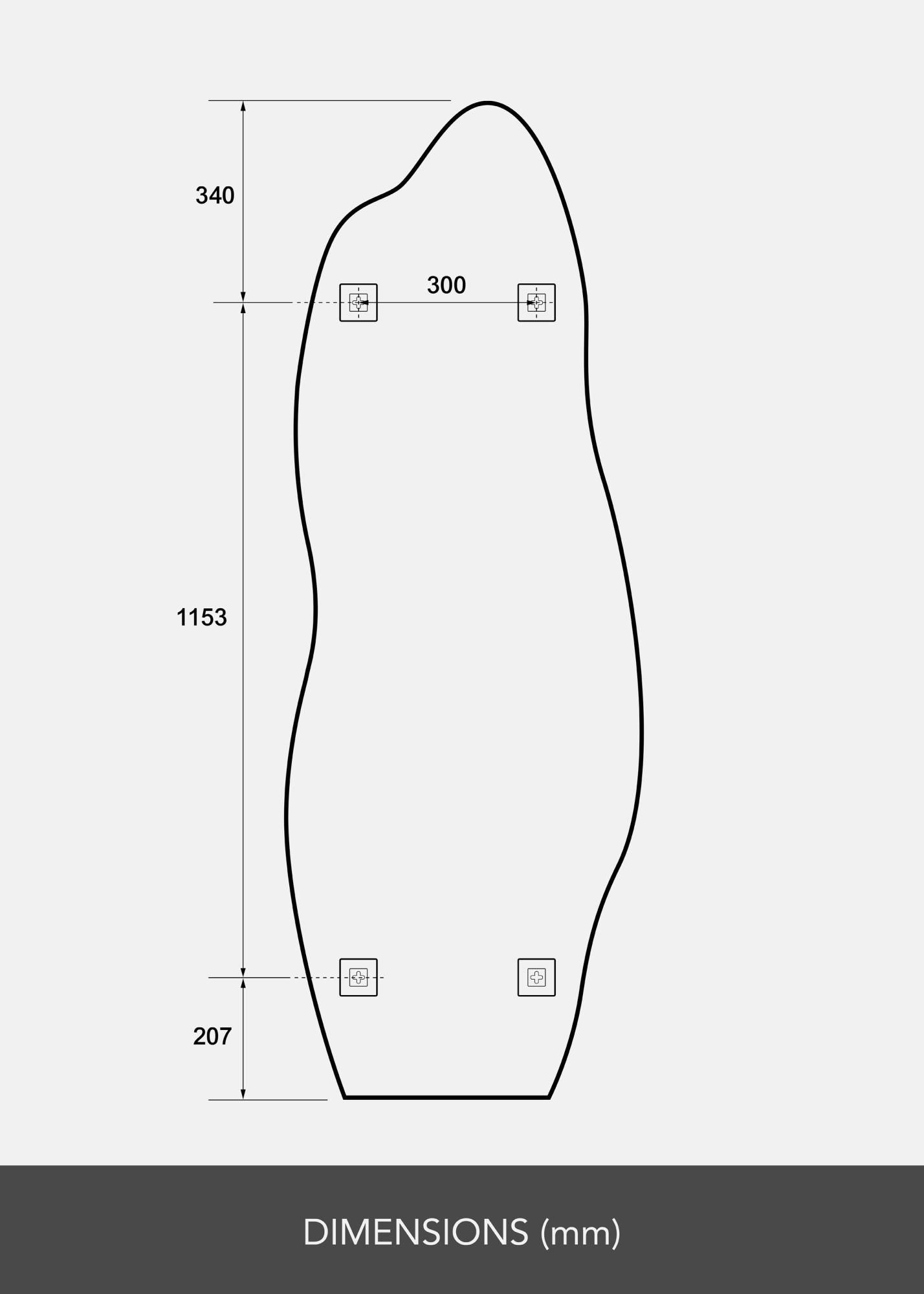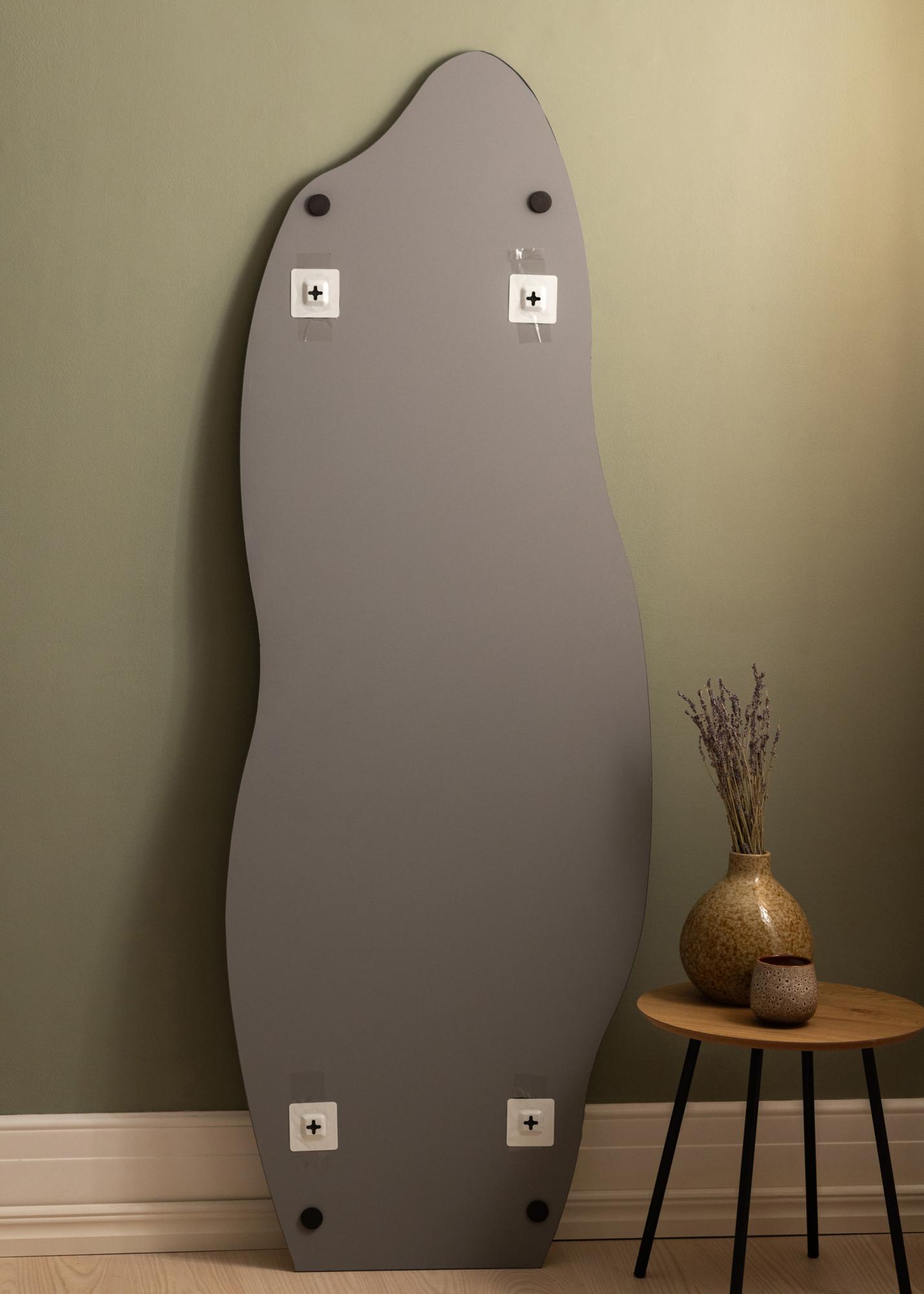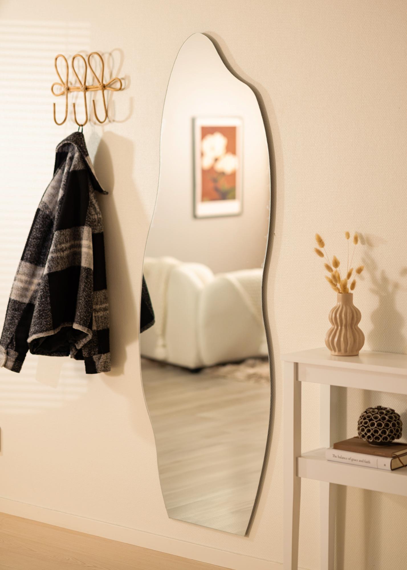Ogledalo ima edinstveno, valovito obliko, ki je široka pri osnovi in se elegantno vzpenja navzgor. Ta nenavadna oblika ga naredi za umetniško delo in doda dinamičen pridih vaši steni. Zasnovano je kot osrednja točka v vašem domu, ne glede na to, ali ga namestite v hodniku, spalnici ali dnevni sobi.