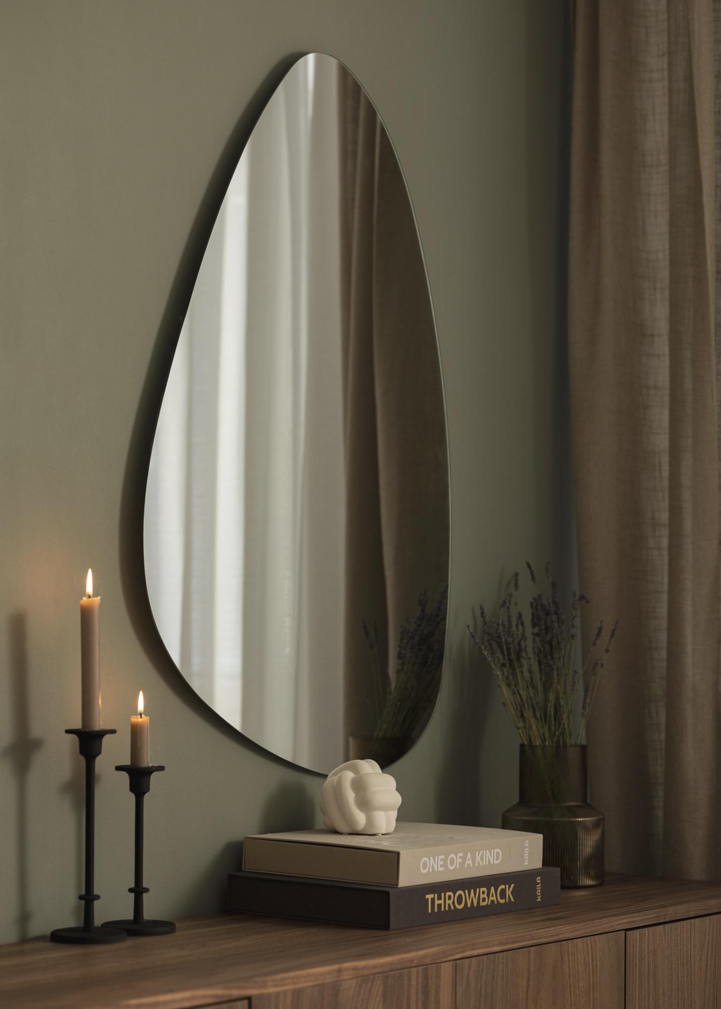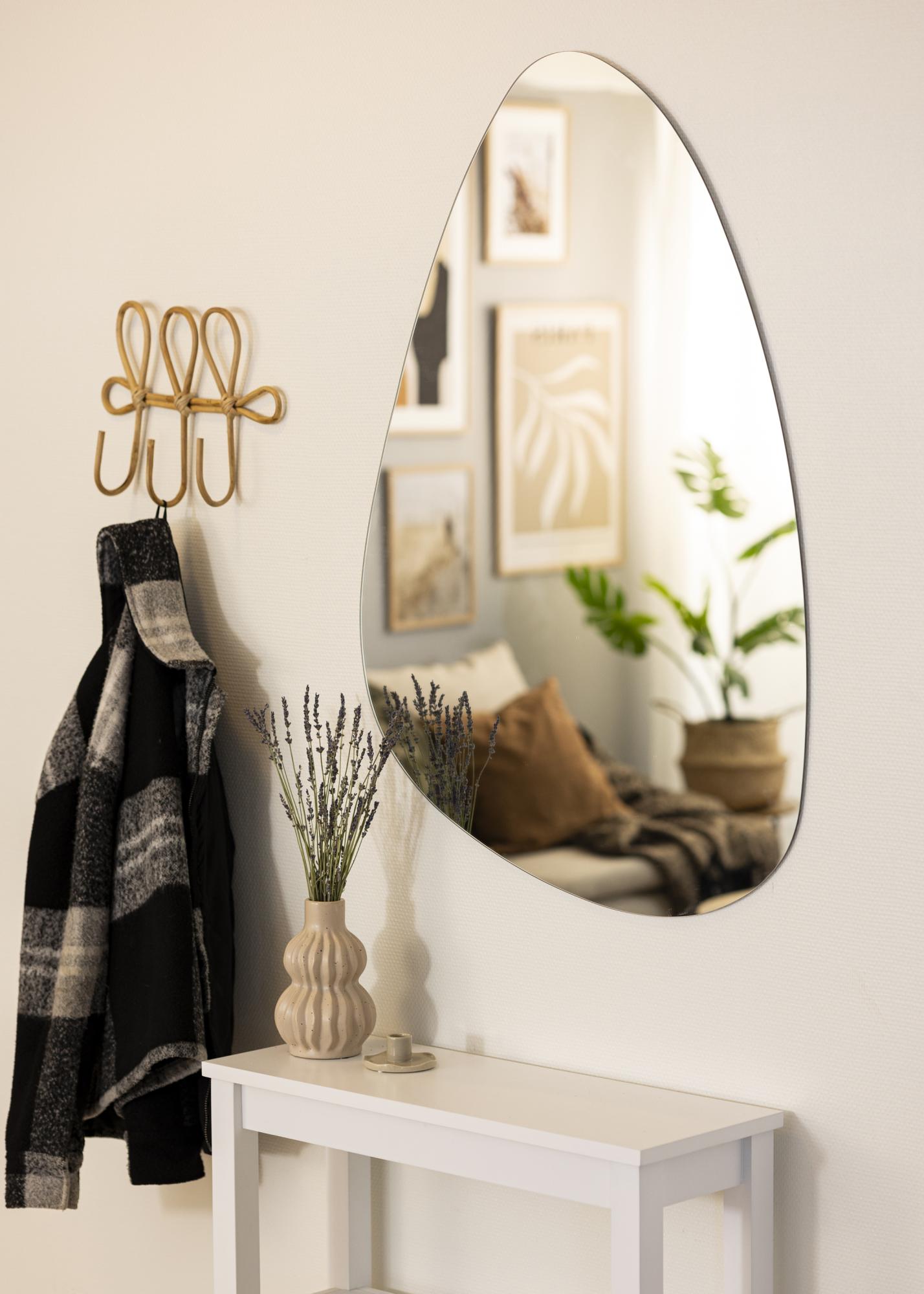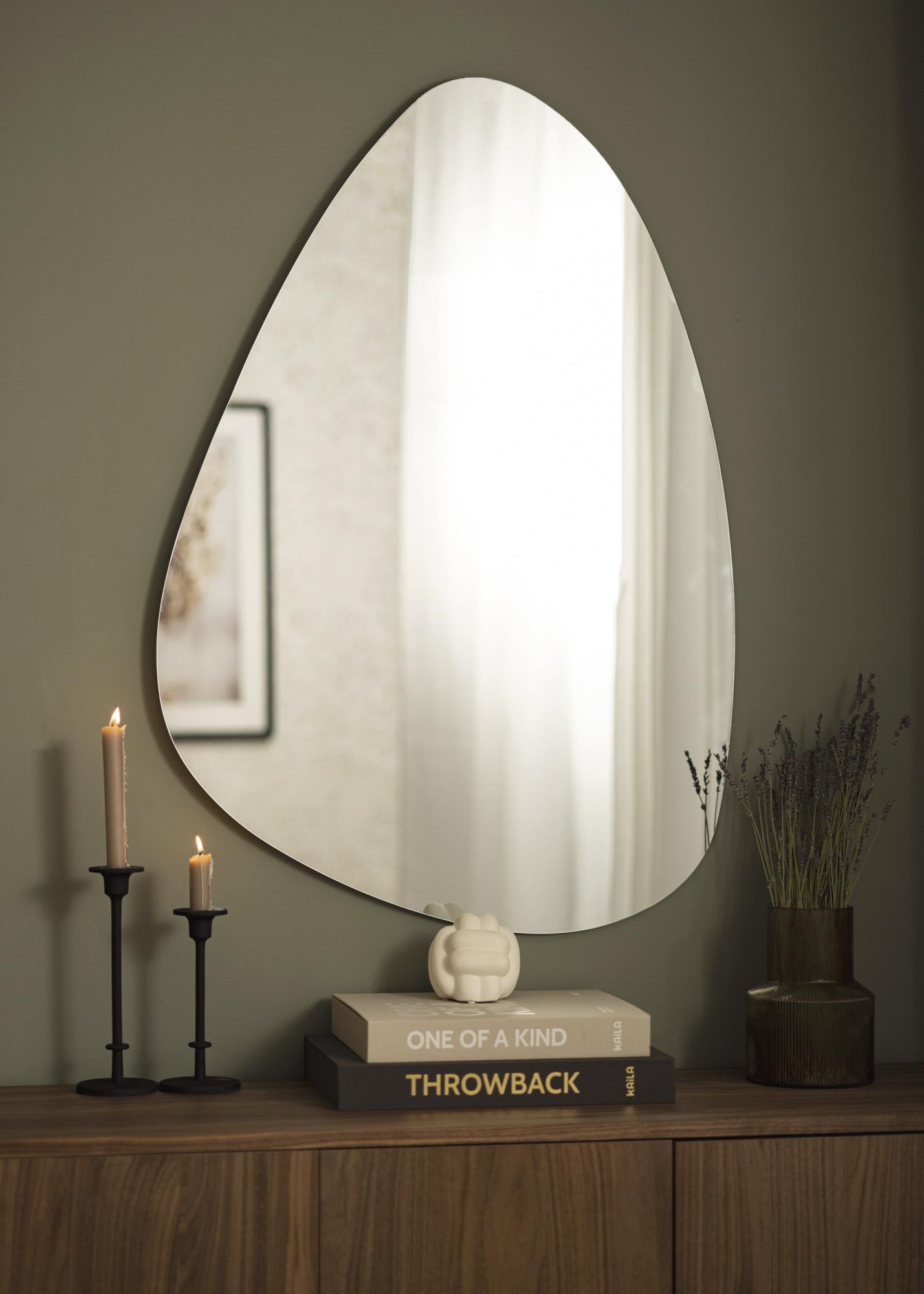 To ogledalo je kot nalašč za vas, če iščete elegantno ogledalo v minimalističnem slogu. Asimetrična oblika je kombinirana s tankim ogledalnim steklom in robovi brez okvirja, kar daje zelo eleganten videz. Na zadnji strani so stenski nosilci.