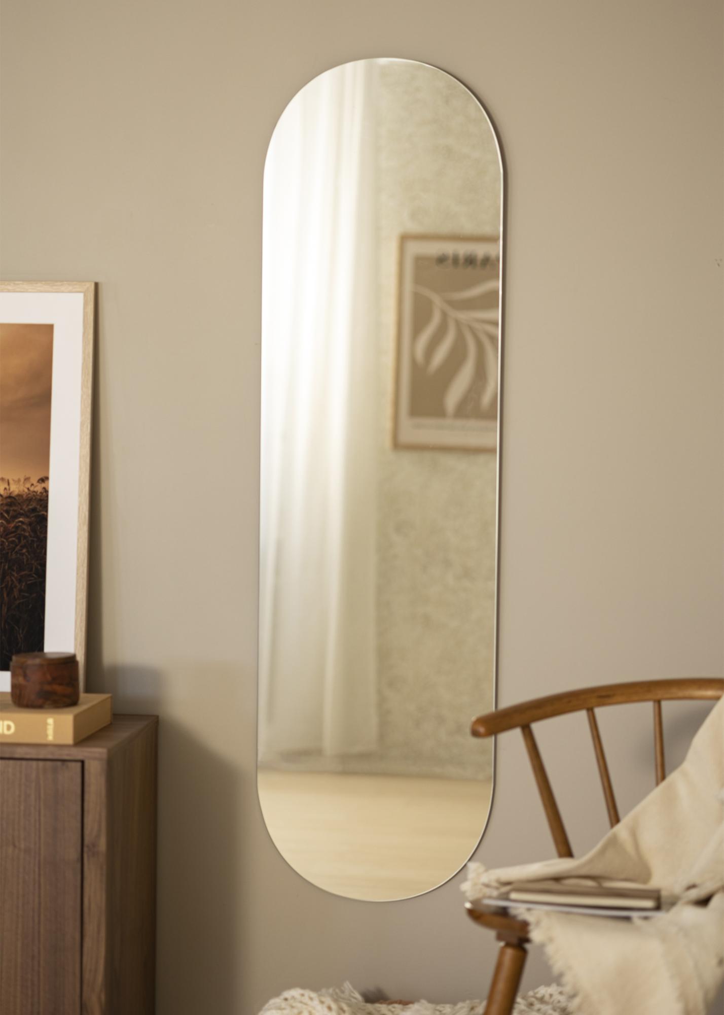 Odkrijte elegantno in vsestransko stensko ogledalo, zasnovano za dopolnitev vsakega prostora v vašem domu. S svojimi velikodušnimi dimenzijami 40x140 cm, to ogledalo ponuja praktično in dekorativno funkcijo v vašem prostoru. Njegova organska in podolgovata oblika z zaobljenimi robovi in mehko ukrivljenostjo na vrhu daje sodoben in mehak videz, ki se zlije z različnimi slogi notranje opreme.