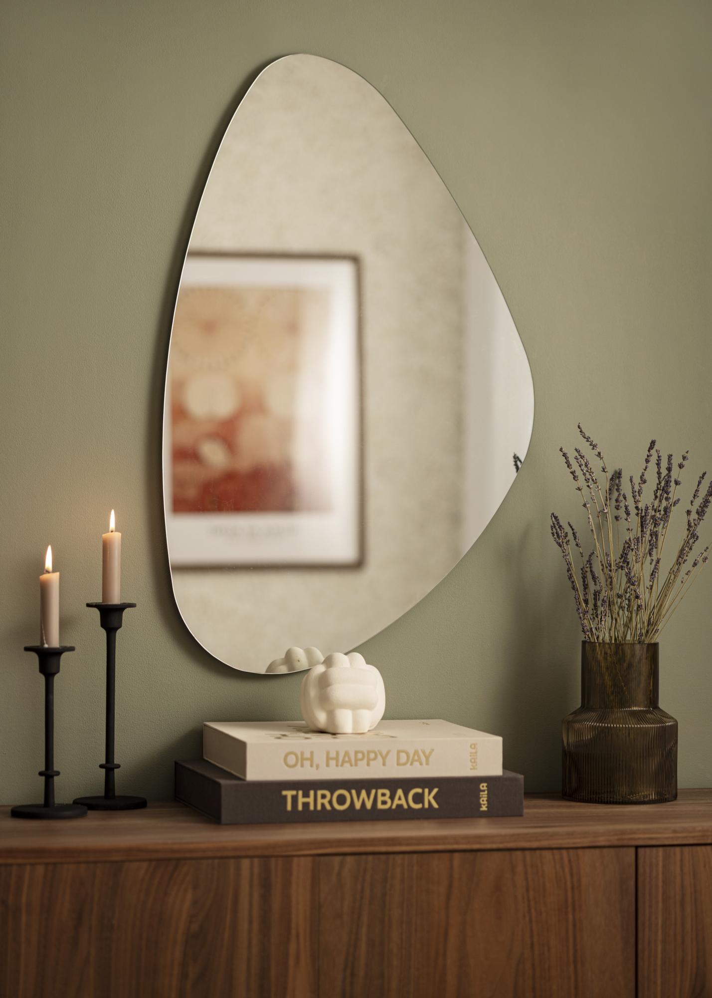 Posebna asimetrična oblika z valovitim robom omogoča, da se ogledalo razlikuje od ostalih in postane tema pogovora v vašem domu. Ne glede na to, ali ga postavite v hodnik, dnevno sobo ali spalnico, bo to ogledalo dodalo pridih elegance in sloga. Njegove fleksibilne možnosti obešanja olajšajo obnovo videza prostora, ko to želite.