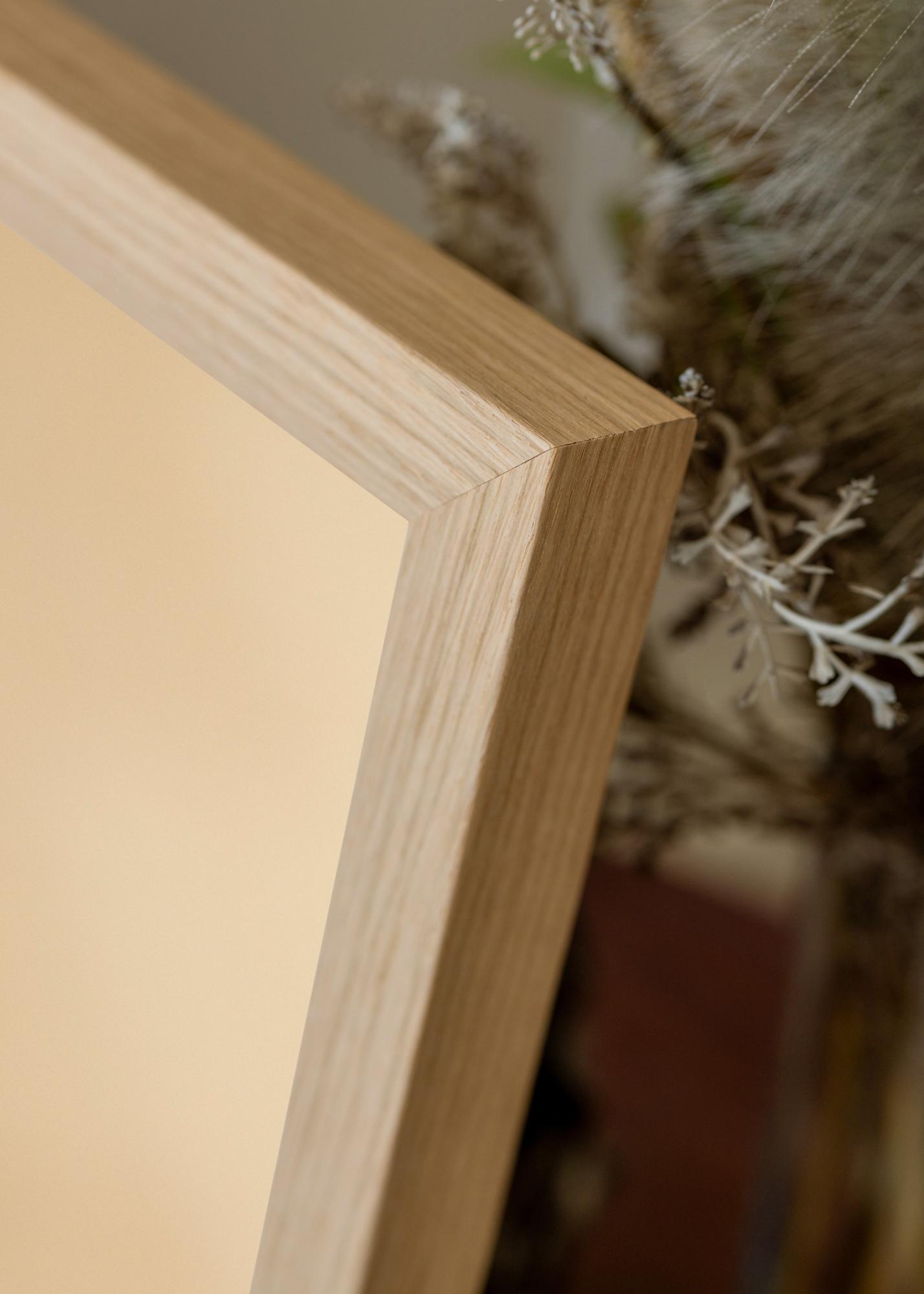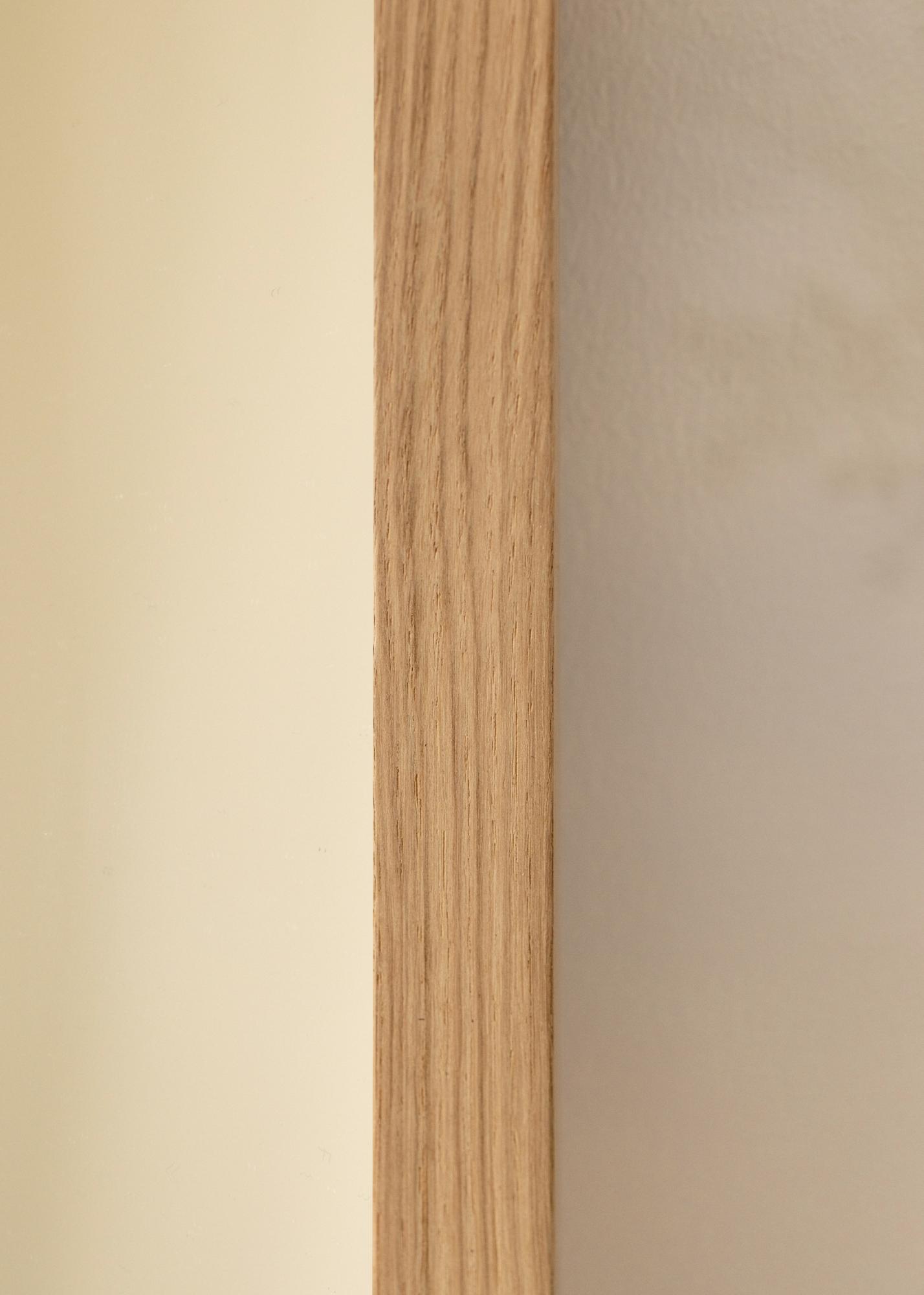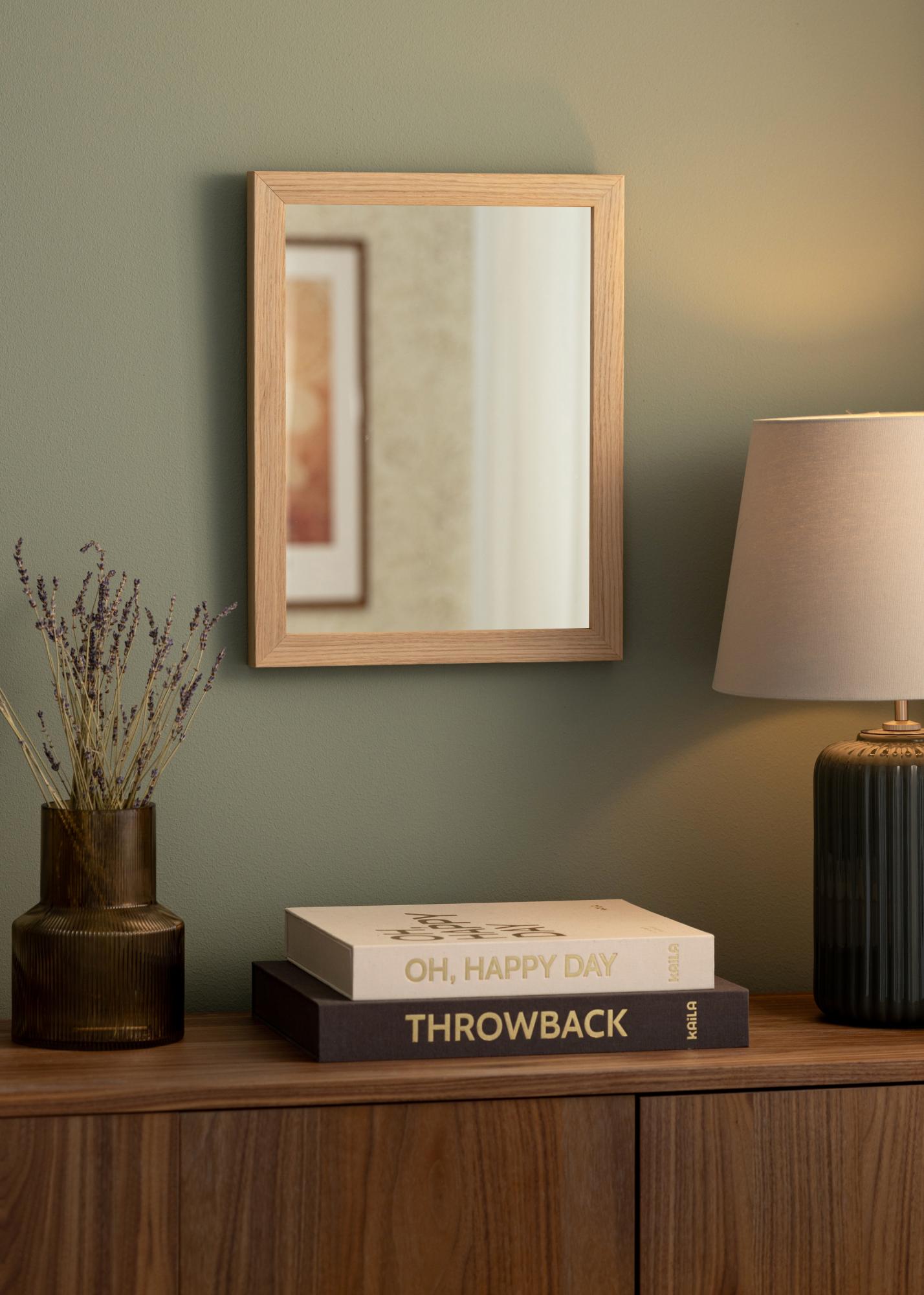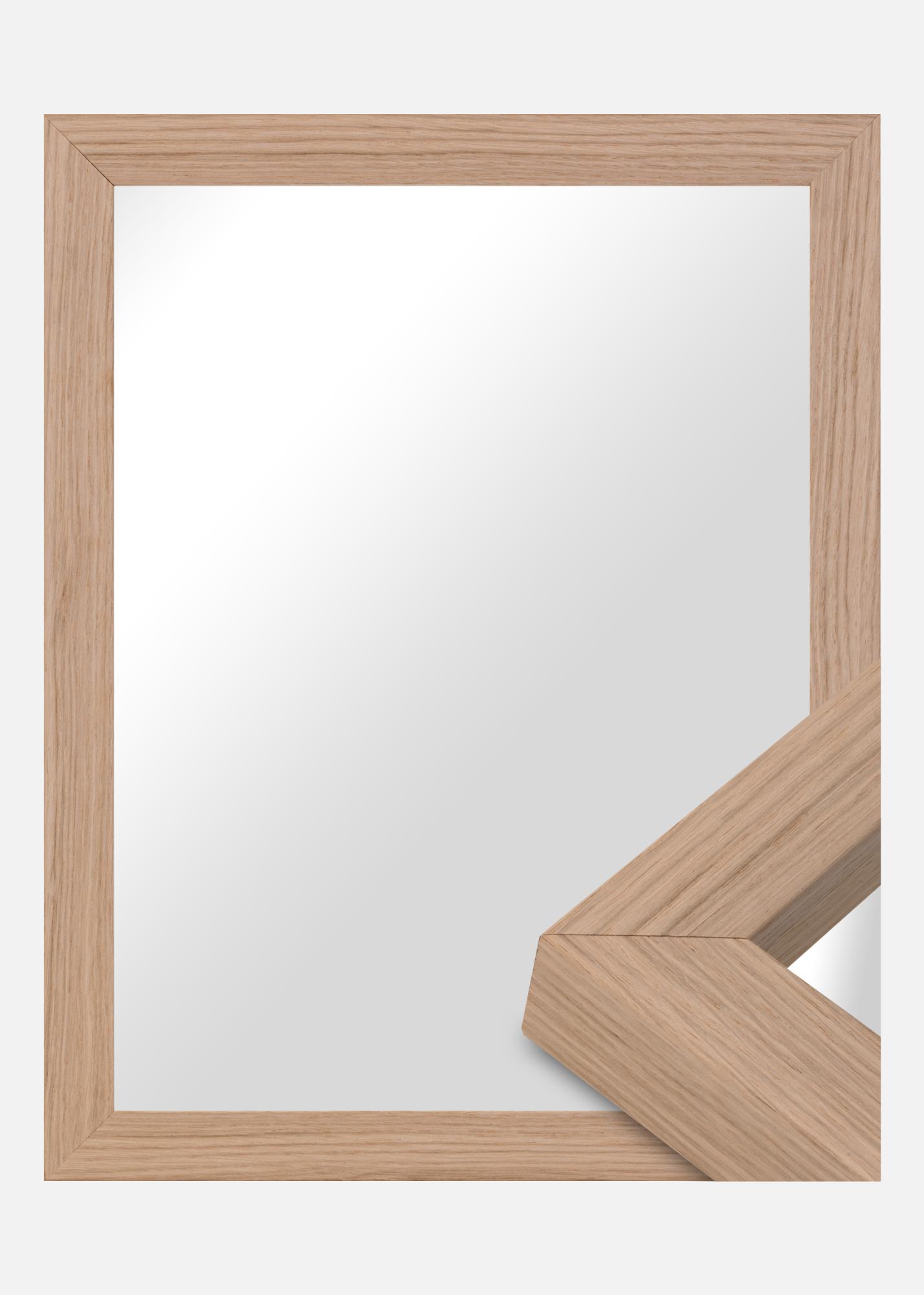 Okvir je izdelan iz bora, kar ga naredi tako trpežnega kot tudi lahkega. Globina 32 mm zagotavlja stabilno konstrukcijo ogledala in omogoča, da varno visi na steni. Topel ton v vzorcu hrasta poudarja brezčasno obliko ogledala in omogoča enostavno kombiniranje z različnimi stili notranje opreme.
