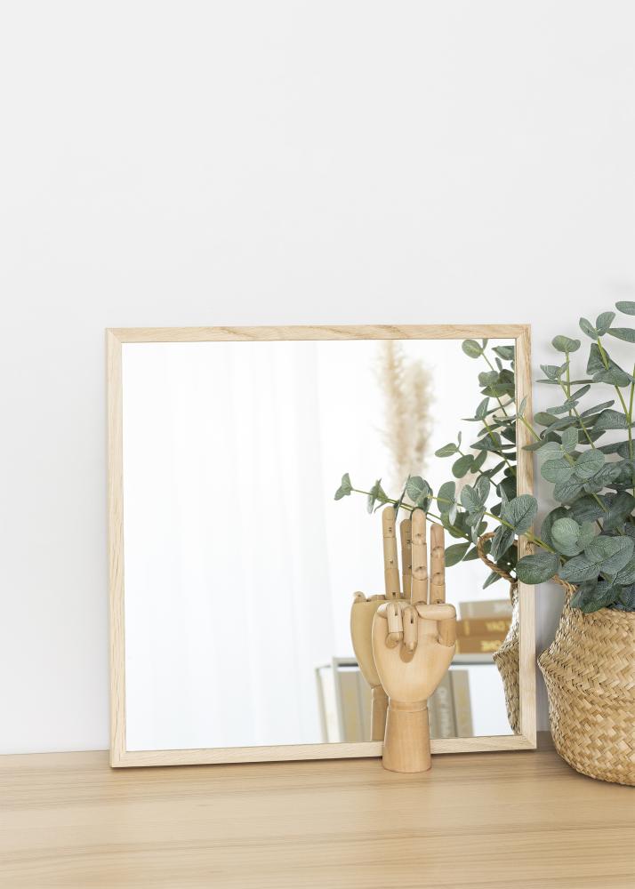 To je stensko ogledalo s tankim lesenim okvirjem, ki se odlično prilega tako v moderna kot bolj boemska stanovanja. Ogledalo je prikaz skandinavskega dizajna v svoji najboljši obliki, z neobarvanim ogledalnim steklom in svetlim lesenim okvirjem z ravnim profilom, ki skupaj daje svetlo in svežo podobo.