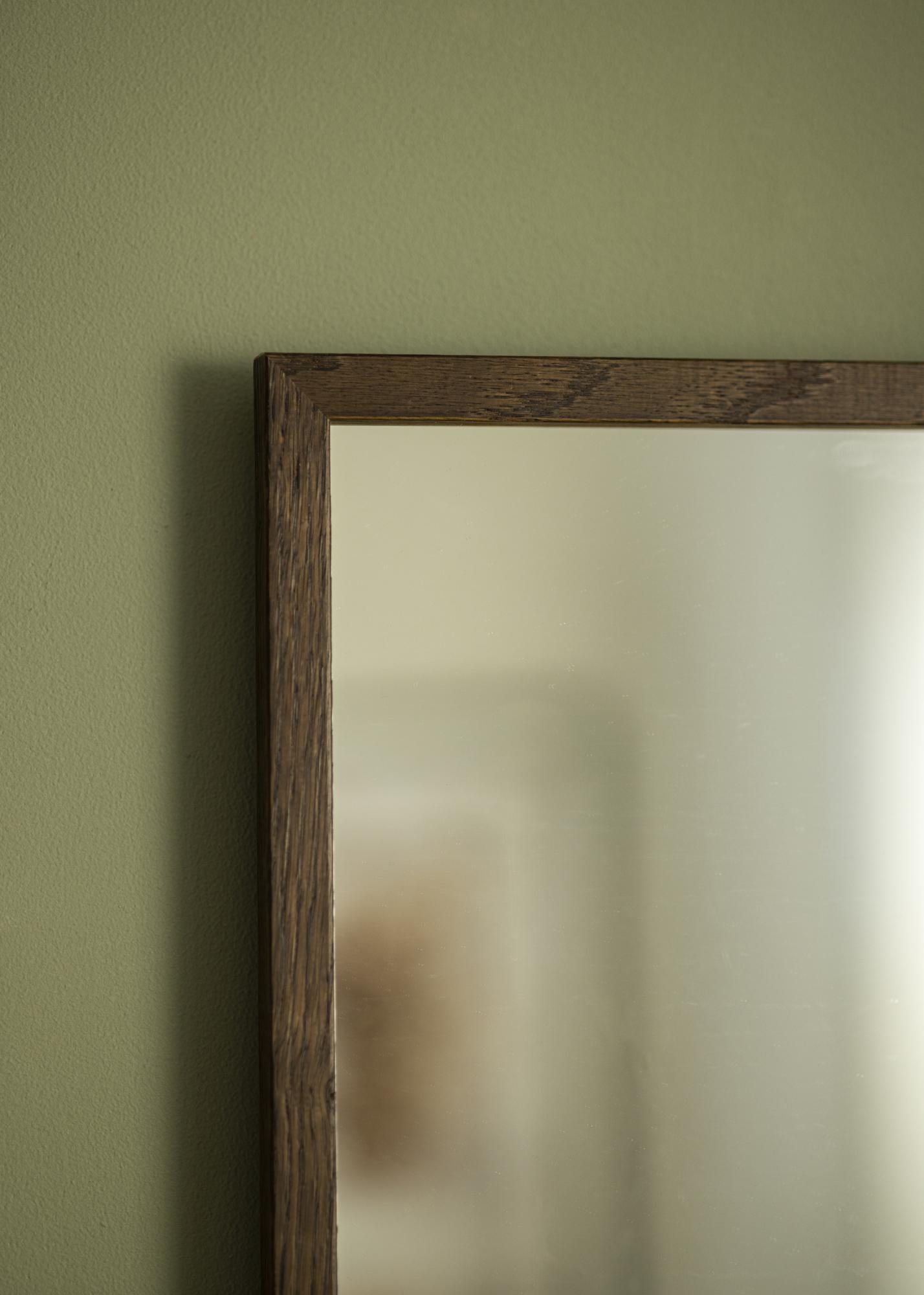 Odkrijte elegantno eleganco z našim pravokotnim ogledalom, popolnoma oblikovanim za obogatitev vašega doma s pridihom klasične lepote. S svojimi velikodušnimi merami 46x86 cm to ogledalo ni le praktično, ampak tudi dekorativni detajl, ki pritegne oči. Njegov debel okvir iz pravega hrastovega lesa ima globoko temen hrastov odtenek, ki takoj daje občutek robustne elegance in brezčasnega šarma vsakemu prostoru.
