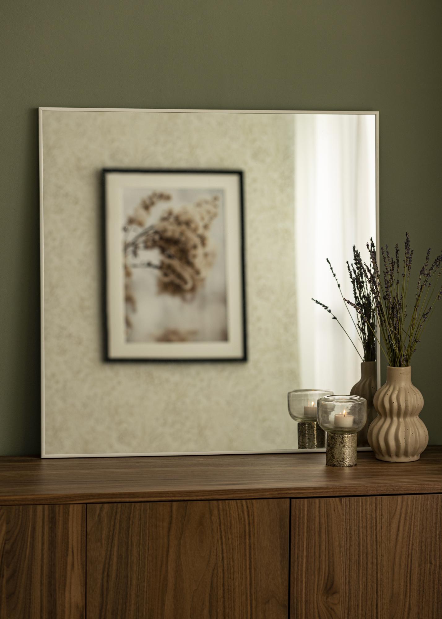 Odkrijte elegantno eleganco z našim pravokotnim ogledalom, ki je popolno za dodajanje občutka prostora in svetlobe v vašem domu. S svojimi velikodušnimi dimenzijami 75x75 cm ponuja ogledalo praktično in dekorativno funkcijo v vseh prostorih. Njegov bel aluminijast okvir daje sodoben pridih, hkrati pa ohranja brezčasni čar.