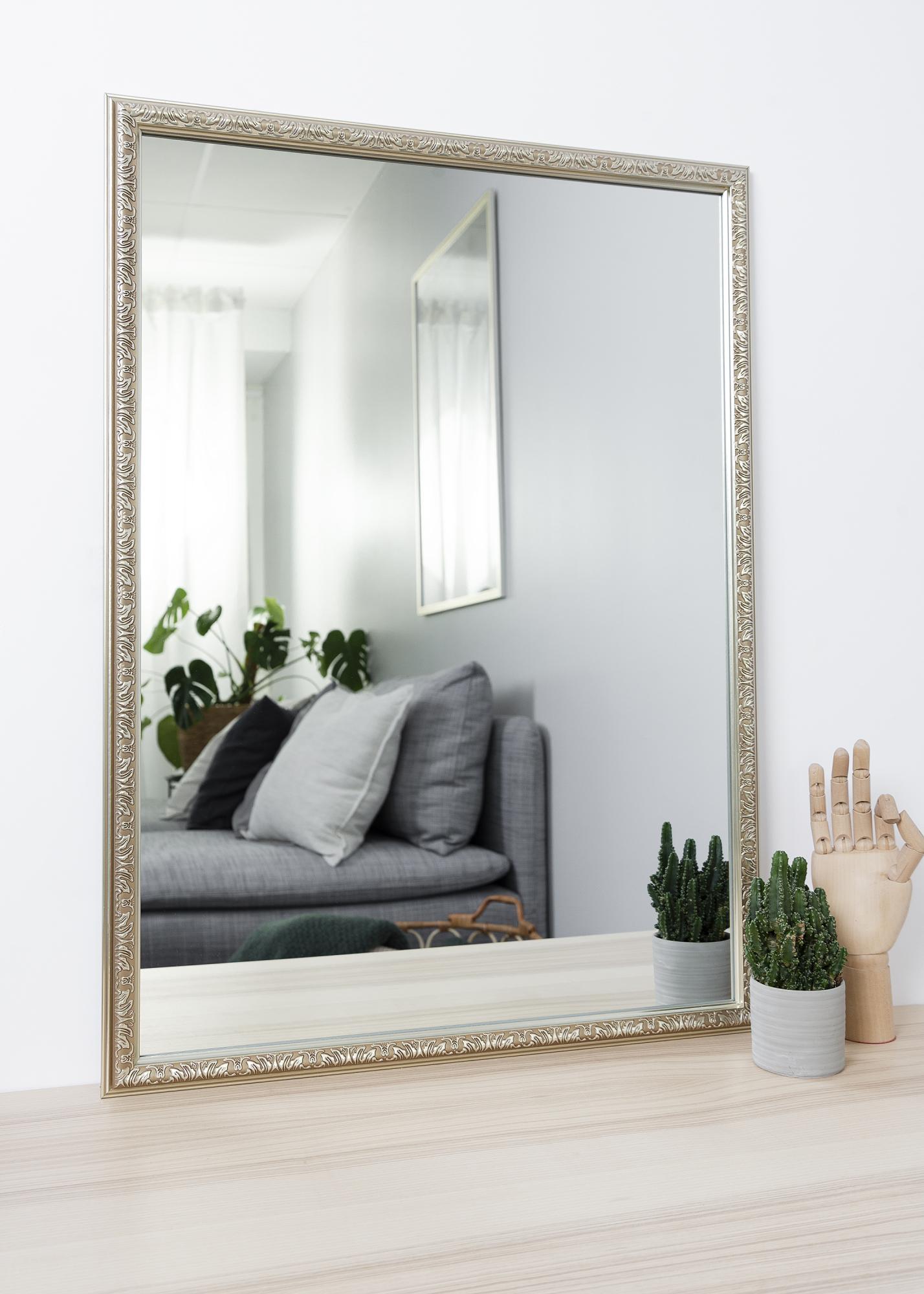 Začni izbiralec okvirja »Nost Silver je serija stenskih ogledal. Okvir je bogato okrašen z nepravilnimi simboli, ki dajejo nekoliko skrivnosten vtis.
