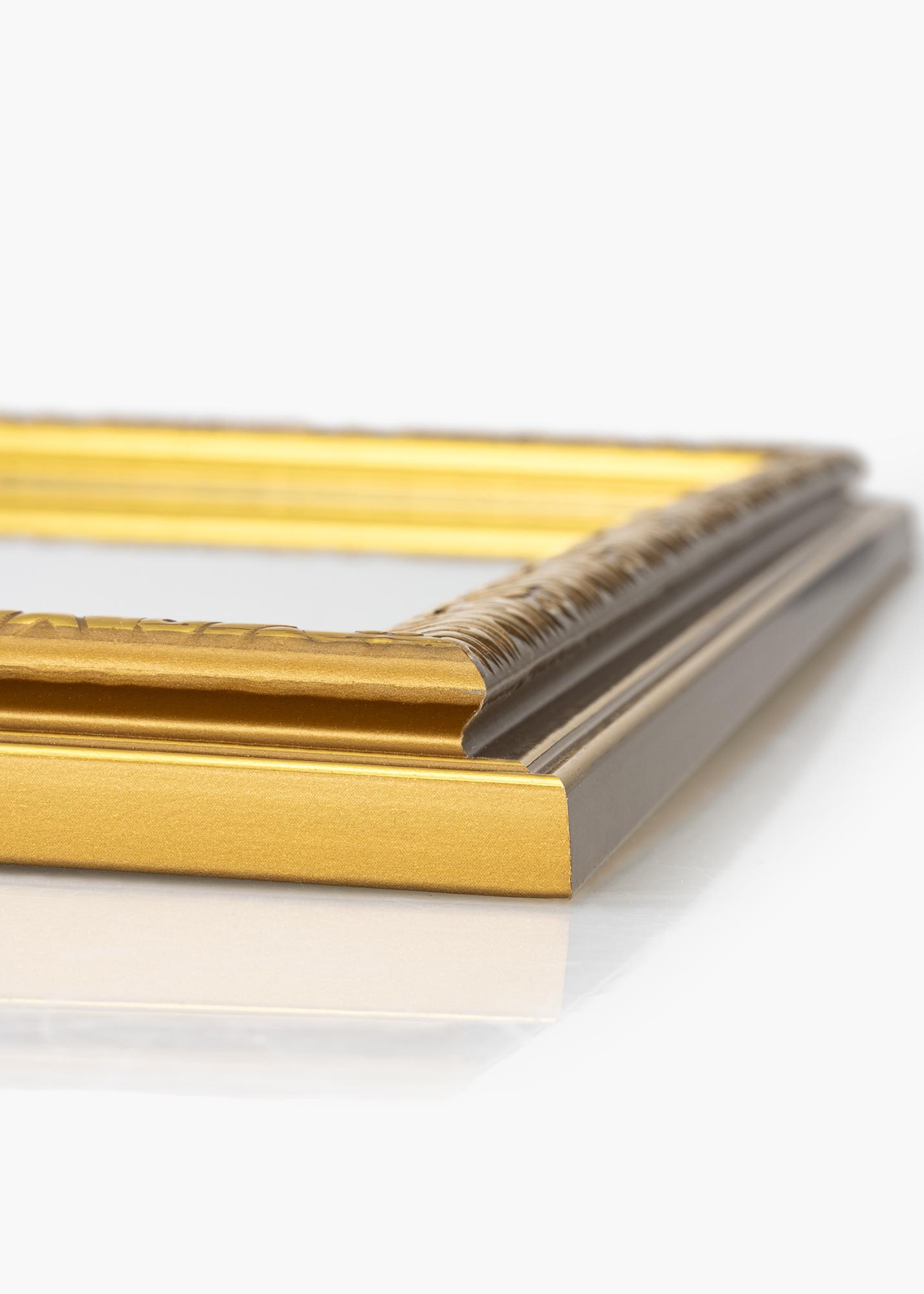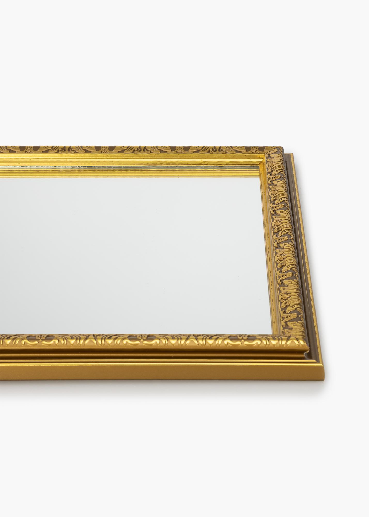 Če iščete luksuzno, zlato obarvano ogledalo, lahko zdaj prenehate iskati. Nostalgia Zlato je stensko ogledalo s 2,8 cm širokim okvirjem z elegantnim profilom in čudovitim dekorativnim vzorcem. Steklo ogledala bo odsevalo svetlobo v vaši sobi, medtem ko bo ogledalo samo postalo stilski detajl na vaši steni. Na zadnji strani je stenski nosilec za lažje obešanje.