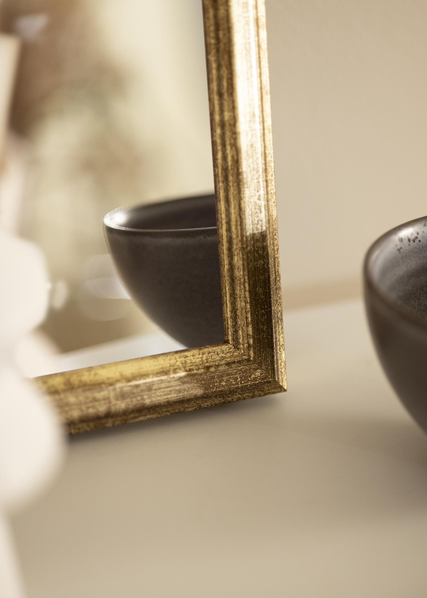 Naredite steno lepo z dekorativnim ogledalom, ki jo dvigne in osvetli! Prav ta model ima okvir v zlati barvi, ki je bil obdelan, da izgleda tako čudovito starinsko. Ujemajte ga z enakimi okviri za slike za lep celoten videz.