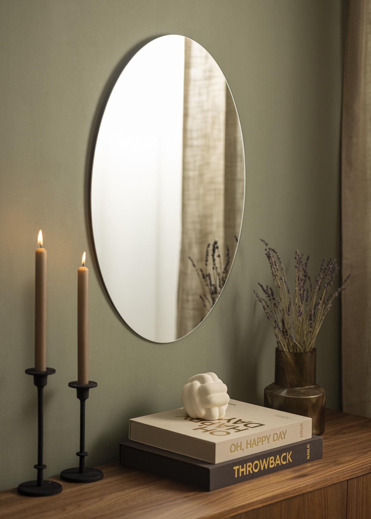 Sku:Ogledalo brez roba z ovalno obliko. Popoln dekorativni element v dnevni sobi ali kot manjše hodniško ogledalo.