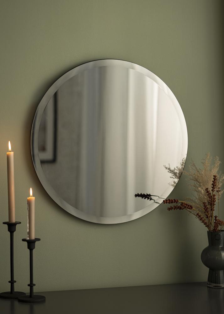 To je okroglo ogledalo z ogledalnim steklom v čudoviti toplo sivi barvi. Je danski Incado, ki stoji za dizajnom, in njegova posnetena roba daje zelo razkošen občutek.