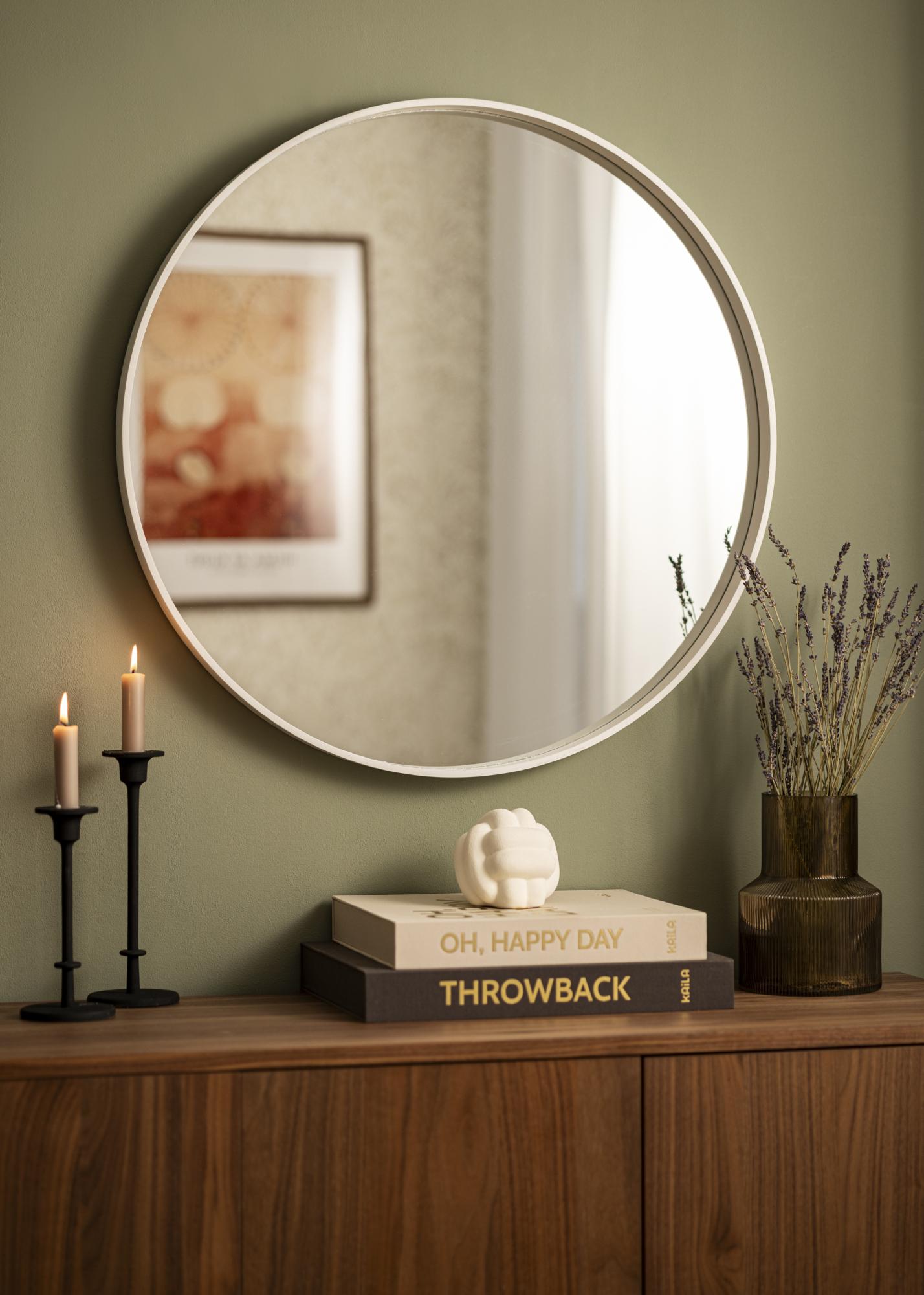 Odkrijte elegantno preprostost z našim okroglim ogledalom, brezčasen dekorativni element, ki se popolnoma prilega vsakemu domu. Bela okvir okoli ogledala dodaja svetel in čist pridih, ki dopolnjuje vse barve in sloge v vaši sobi. Njegova minimalistična zasnova omogoča, da se zlije, hkrati pa ostane izrazit poudarek na steni.