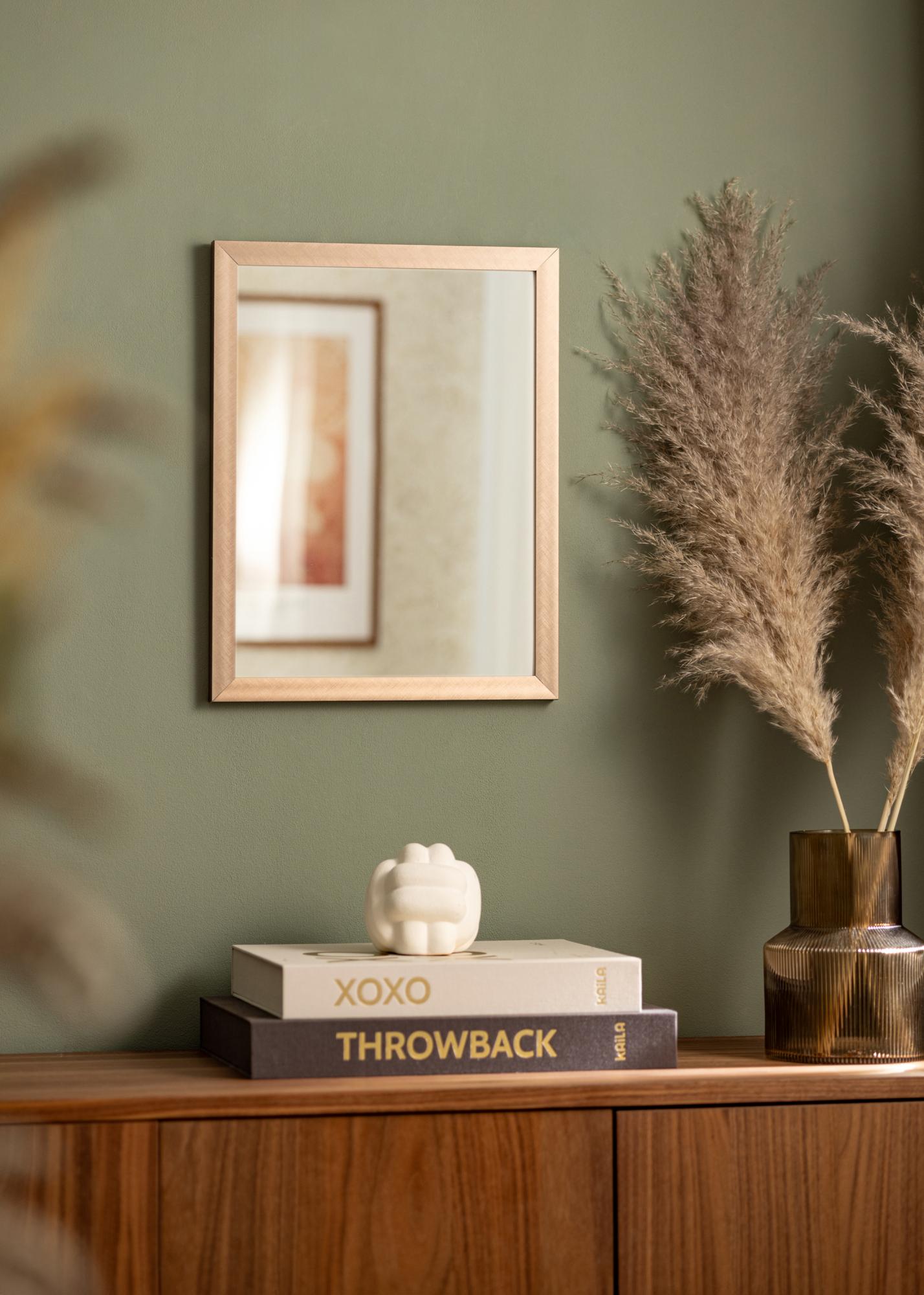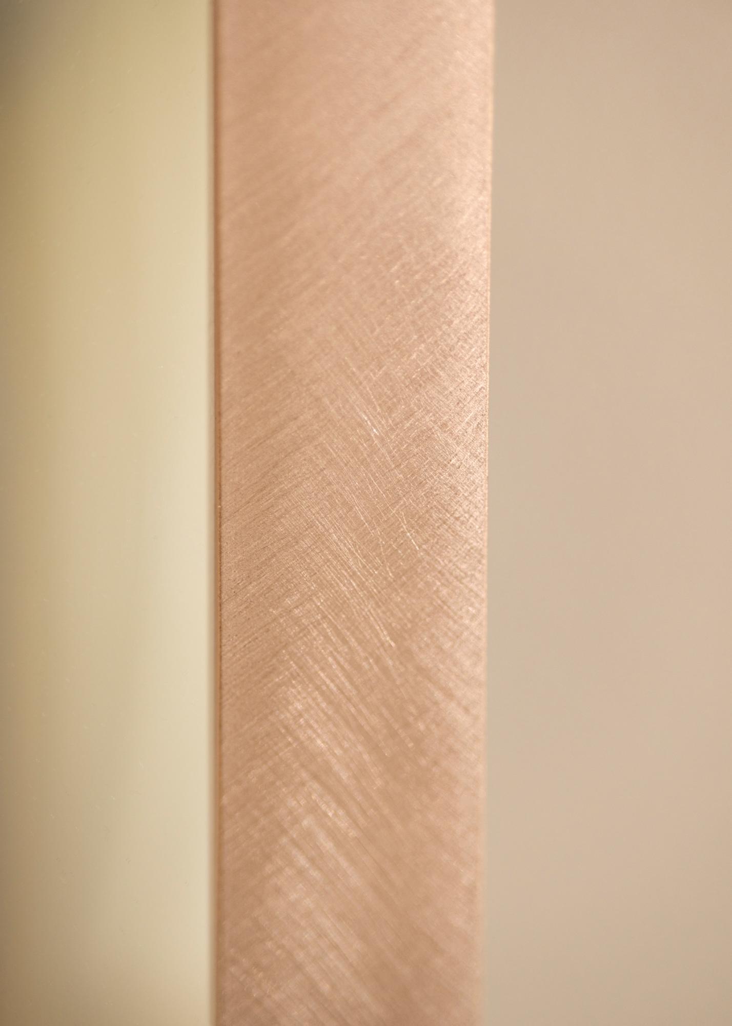 Minimalistično ogledalo z aluminijastim okvirjem v bronasti barvi, ki lepo visi tako v hodniku kot v garderobi. Elegantna izdelava okvirja za ogledalo se prilega vsem vrstam notranjosti, vendar se še posebej dobro poda v elegantno nordijsko notranjost, kjer lahko predstavlja topel element v hladnem. Ogledalo se lahko uporablja za osvetlitev sob ali za občutek večjega prostora s postavitvijo tako, da odseva svetlobo.