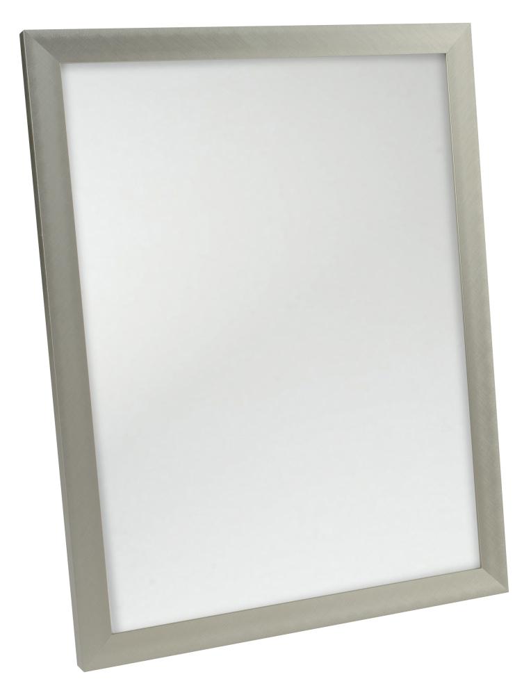 Eleganten moderna ogledalo z okvirjem iz brušenega aluminija, ki se dobro poda v vsak dom s sodobno notranjo opremo. Siva kovina daje hladen vtis in omogoča, da ogledalo zavzame diskretno mesto na steni, ne da bi tekmovalo z drugimi dodatki za notranjo opremo. Kljub svoji elegantni zasnovi se zdi močno in stabilno. Ogledalo lahko kombinirate z drugimi kovinskimi predmeti za notranjo opremo ter fotografijami ali grafikami v podobnih okvirjih, da ustvarite občutek celovitosti v prostoru.