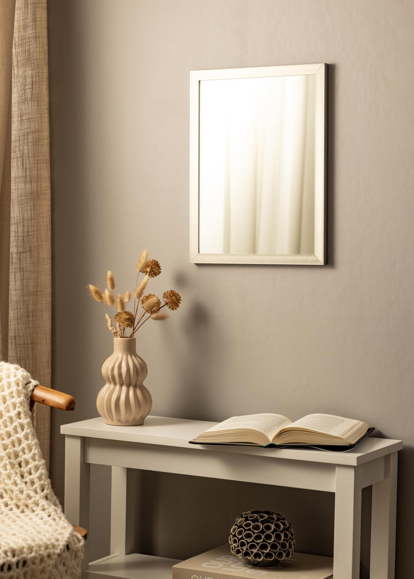 Ogledala po meri so ročno izdelana v naši lastni delavnici za okvirje s float-steklom, ki je enakomernejše steklo in nudi boljše svetlobne lastnosti kot navadno strojno steklo.
