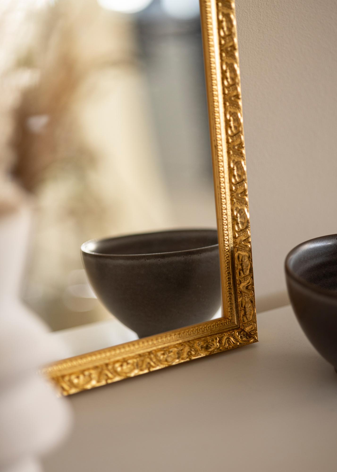 Elegantno retro navdihnjeno zlato ogledalo visoke kakovosti z ekskluzivnim dizajnom, izdelano v Italiji.