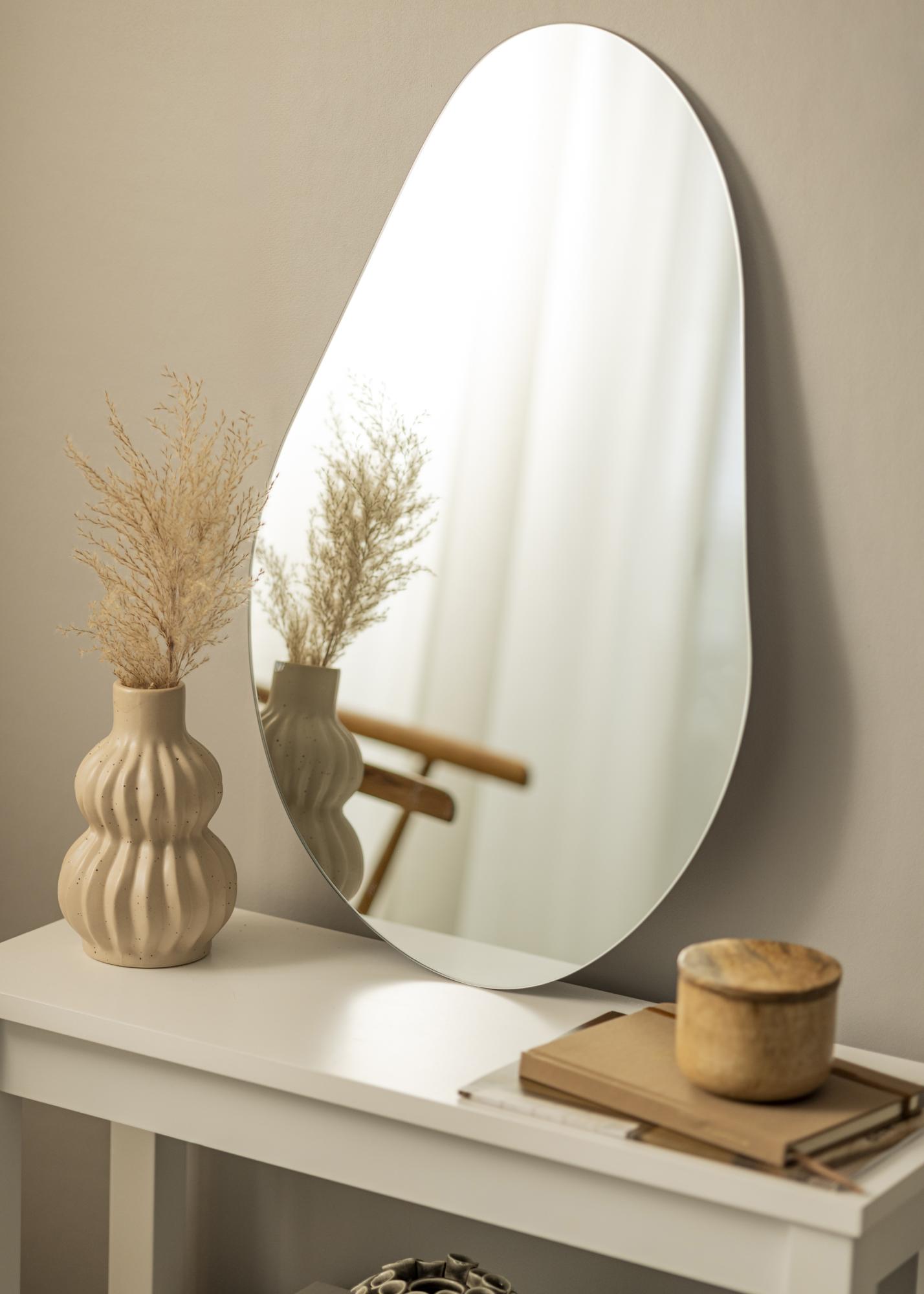 Smooth Cloud je stensko ogledalo z ovalno obliko in rahlo konkavnimi stranicami. Ustvarja mehko obliko, ki je zelo elegantna. Stilski vtis je okrepljen z tankim steklom ogledala debeline 4 mm in brezokvirnim dizajnom. To ogledalo tehta 2 kg in meri 40x65 cm.