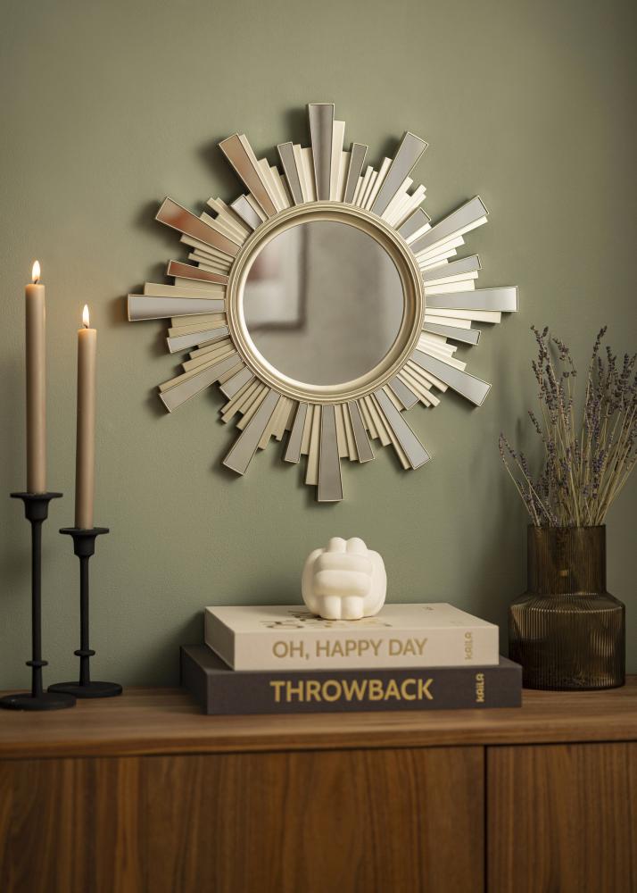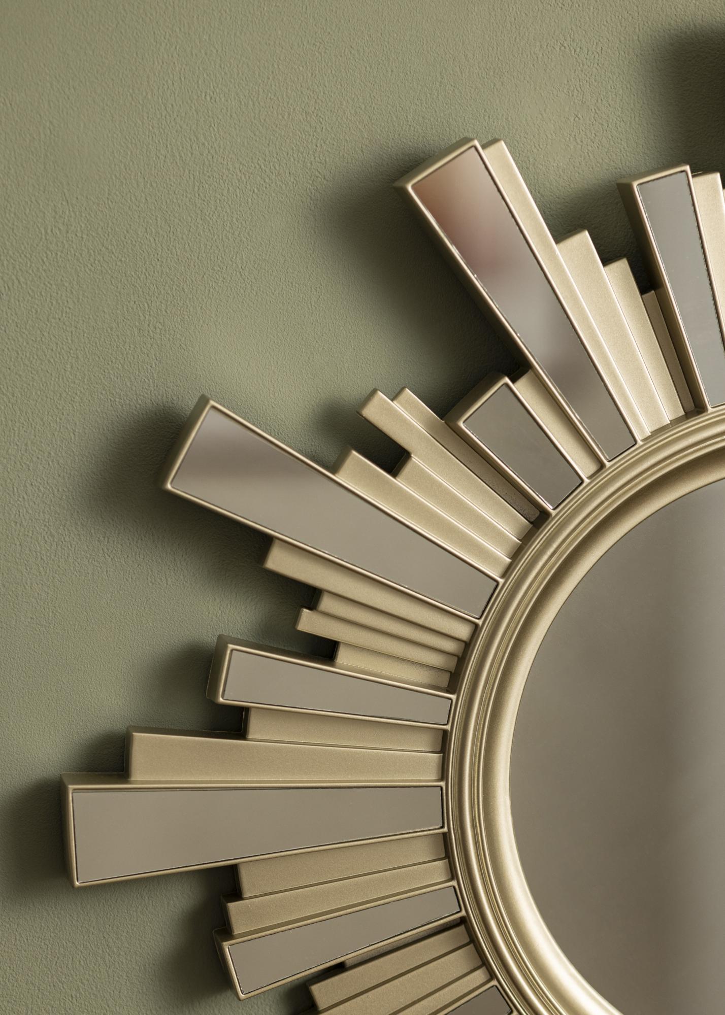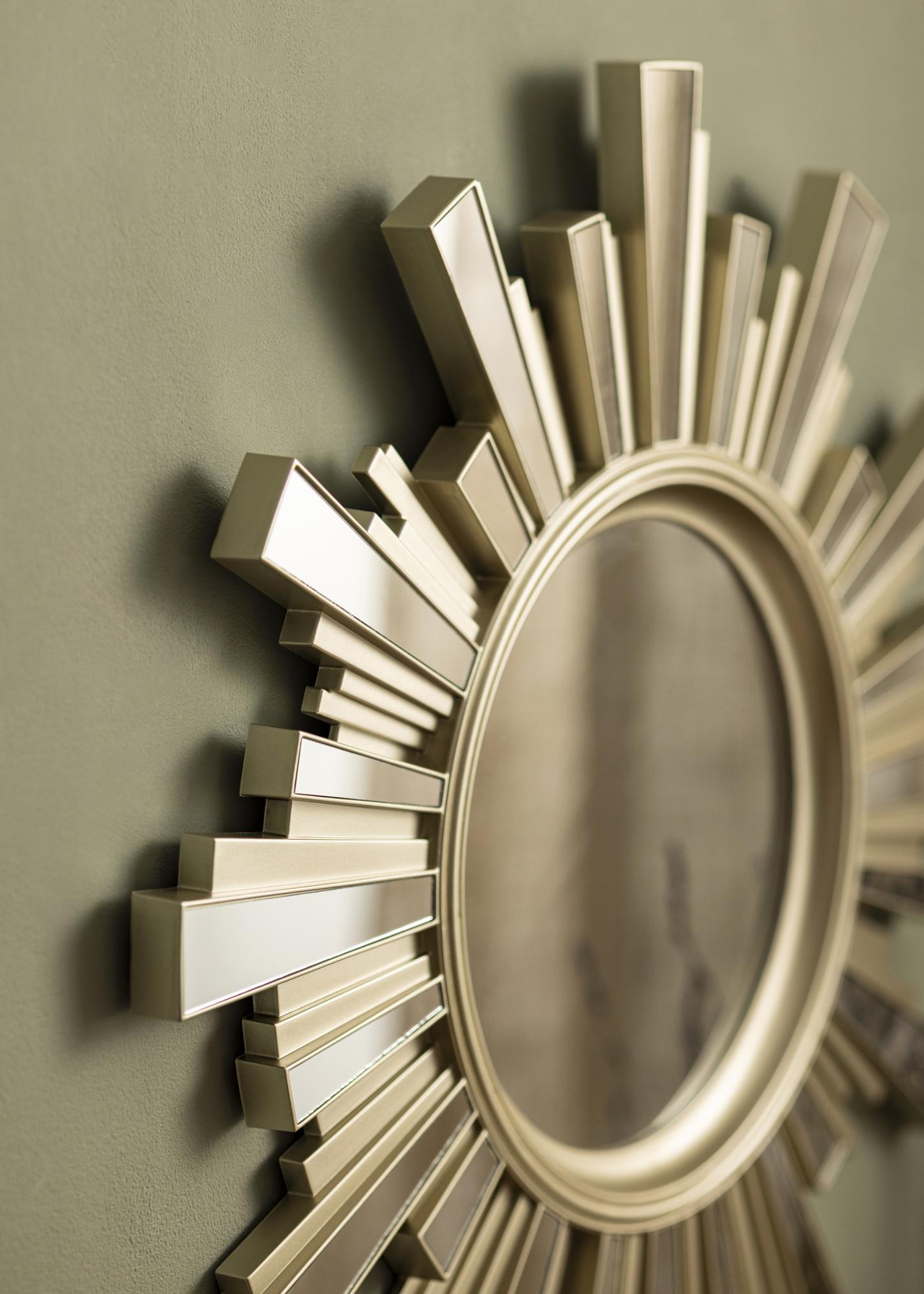 Postavite ogledalo na mesto, kjer bo vidno in prišlo do izraza v svoji dekorativni obliki – v dnevni sobi, jedilnici ali morda v hodniku. Sončno ogledalo lahko visi samostojno na steni ali skupaj z drugo čudovito stensko dekoracijo.